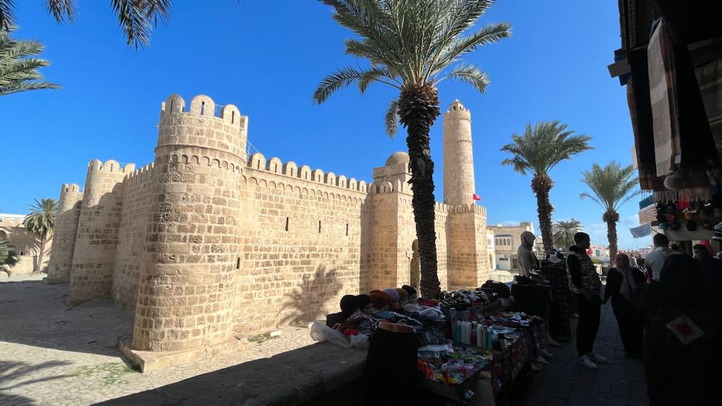 Além do habitual passeio pelos souks, bazares que também vimos na capital, visitamos o ribat, uma fortaleza construída no século 9 pelos romanos para proteger a cidade. Além de descobrir um pouco mais da história local, é possível ver Sousse do alto, ao subir a torre. Há também o museu arqueológico, com diversos mosaicos, e as mesquitas.