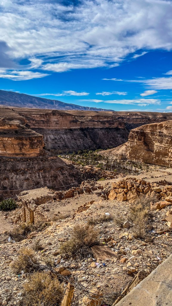 Em nosso terceiro dia em Batna, acompanhados de Zinou, visitamos a garganta de Tughanimine, uma das portas do Saara, e o desfiladeiro de Ghoufi, um enorme vale onde é possível ver casas antigas hoje inabitadas —apenas uma senhora ainda vive lá.