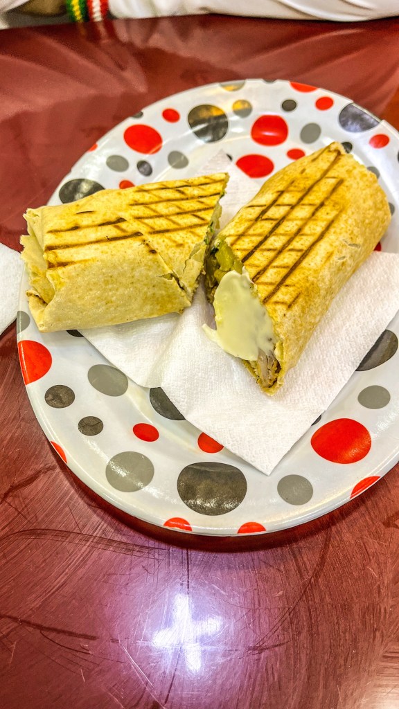 Como os moradores estavam reclusos e sem muito o que fazer na região, dedicamos o resto do dia a ficar no hotel. De noite, ao procurar comida, descobrimos que existe sanduíche de fígado, para desgosto da Pati.