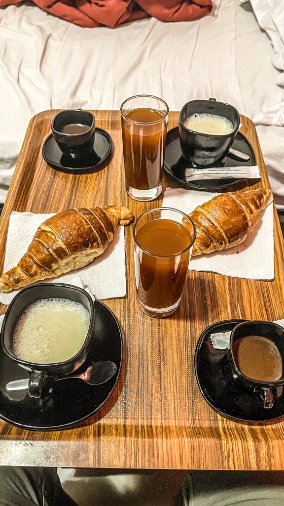 Mais especificamente no controle de passaporte, passamos por um momento de leve estresse. Tivemos de passar separados (até aí, tudo bem), mas ficamos de cinco a dez minutos esperando nosso documento ser checado. Para mim, perguntaram a profissão, mas para o Faraó quiseram saber onde ele se hospedou, ao que ele respondeu o hotel de Argel, e qual o endereço —“Argel”, era o que ele sabia dizer. Não entendemos bem o porquê desse rigor, ainda mais porque estávamos saindo do país.