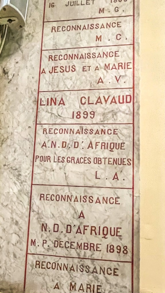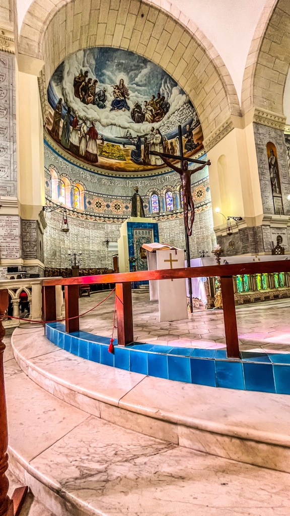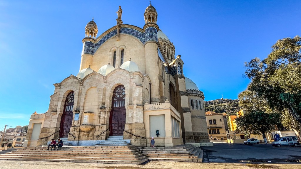 Um dos atrativos é a igreja Nossa Senhora da África (Notre Dame d’Afrique), uma das poucas católicas no país muçulmano. É bonita por fora e interessante por dentro. Além da nossa senhora negra, traz no altar a frase: “Nossa Senhora da África, rogai por nós e pelos muçulmanos”. As paredes, por sua vez, são formadas por placas de “reconhecimento”, instaladas a pedido de diversas pessoas. Como fica no alto, a visita oferece ainda a oportunidade de apreciar a vista de Argel com o azul do mar Mediterrâneo.
