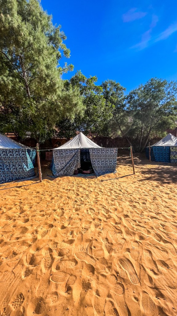 O dono do local, Sid Ahmed, nos falou das diferentes expedições que realizam. É possível fazer de 4×4, a camelo ou mesmo a pé, com durações que variam de cinco a dez dias, em grupos maiores ou menores. Ou seja, o serviço pode ser adaptado ao gosto do cliente, diferentemente dos pacotes fechados que vimos no Marrocos —que, segundo Ahmed, não tem deserto.