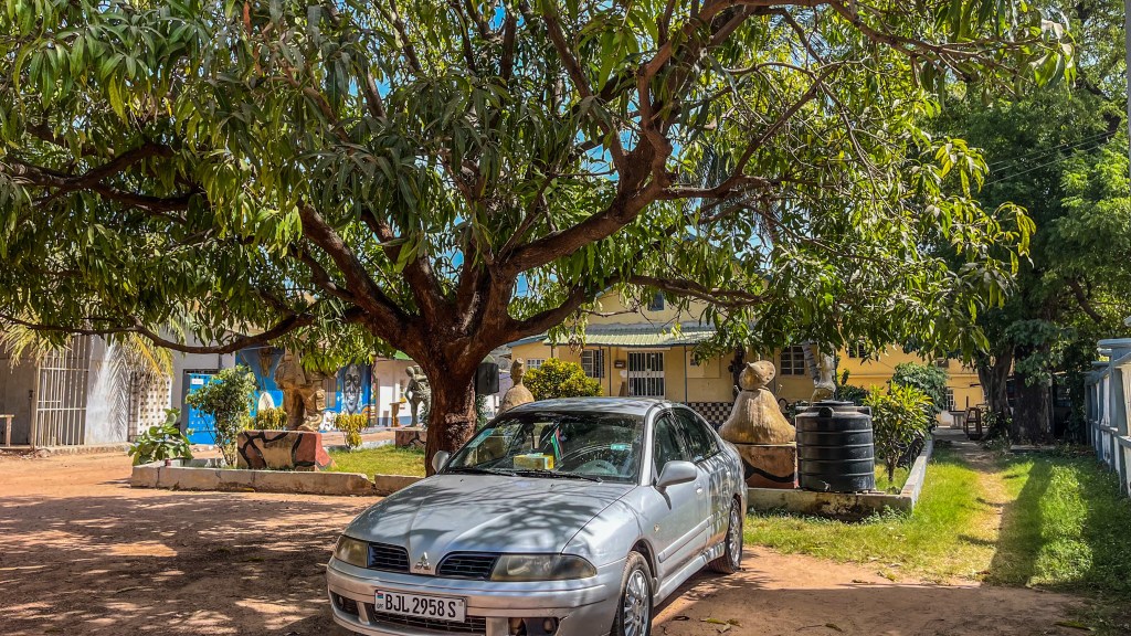Nossa primeira parada no país foi na capital, Banjul. Adotamos, desde a entrada na Mauritânia, a prática de reservar um hotel para a primeira noite no novo país, tanto para informar os oficiais da fronteira, caso perguntem, quanto para chegar com um destino certo, já que a viagem pode durar mais do que imaginávamos. E ainda bem que fizemos isso.