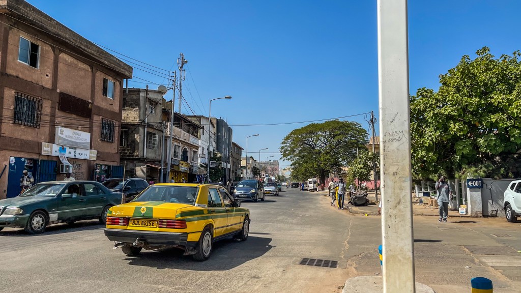 O hotel fica na rua Marina Parade e, mesmo esta sendo paralela à Independence Drive, uma das principais vias da capital, não é das mais convidativas. Tivemos que sair à noite para sacar dinheiro, e a região não tinha iluminação pública. O mesmo acontece na avenida Ecowas, a Wall Street gambiana. Lá estão concentradas as principais agências monetárias, além do Banco Central, e estava tudo escuro. O que nos deixou tranquilos na hora de buscar um caixa eletrônico que permitisse um grande saque foi a quantidade de militares do lado de fora do órgão público e os vigias bancários.