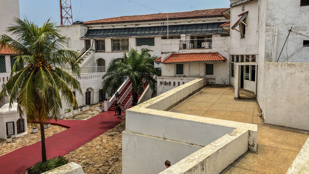 Em meio a uma história tão triste e pesada, é difícil imaginar que até hoje o governo utiliza o Osu Castle como sua sede, mas esse é o dia a dia do local. Por esse motivo, a visitação (50 cedis/R$ 21) só é feita aos fins de semana. É possível ver, a distância, o escritório de onde o presidente despacha.
