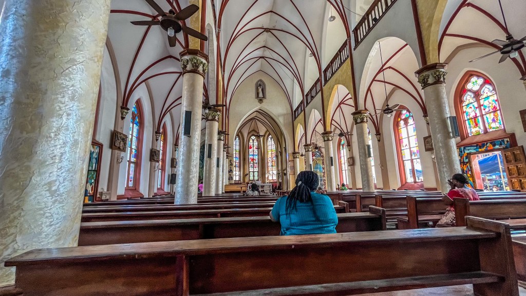 Outro mercado que atrai turistas e moradores é o Grande Mercado de Lomé, na região da Catedral do Sagrado Coração (Sacré-Coeur), o que torna impossível visitar a igreja sem passar por ele. Lá, encontra-se de tudo um pouco, inclusive cambistas –aproveitamos para trocar nossos cedis ganeses em uma taxa para lá de ótima.