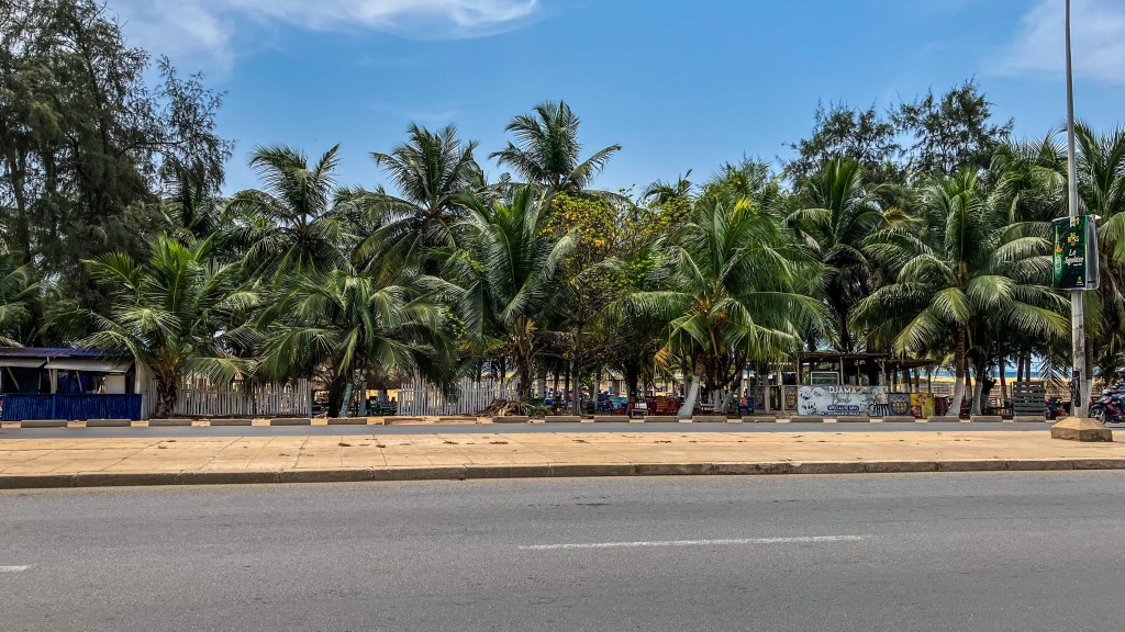 Como falado anteriormente, Lomé é muito quente. Mas, dependendo da região em que você está, é mais ou menos calor. Em algumas ruas do Château d’eau, por exemplo, há muitas árvores e lojas com mudas de plantas, voltadas para jardinagem. Isso faz a caminhada ser aprazível. Já em outras áreas, sem arborização, o calor fica insuportável.
