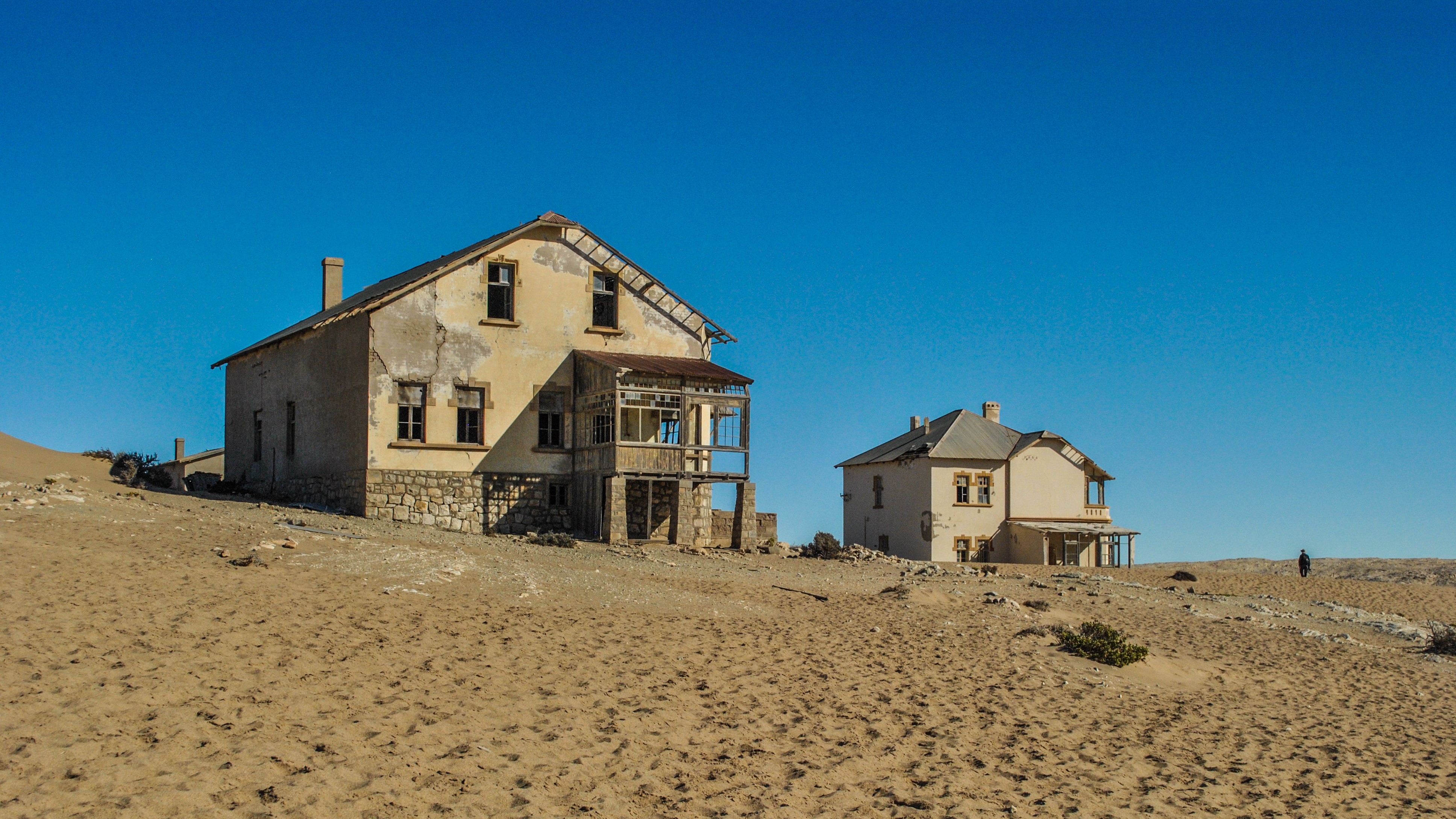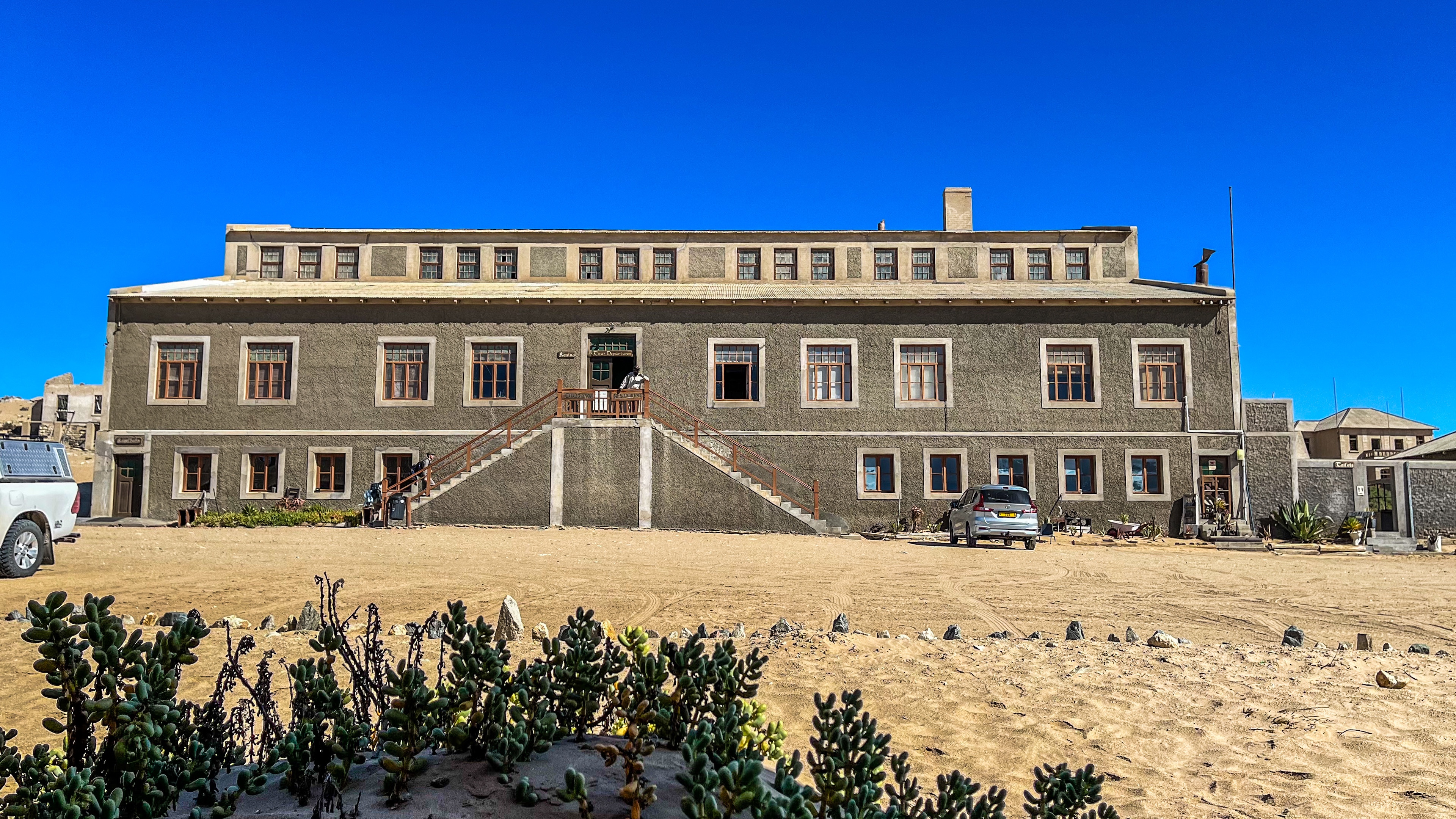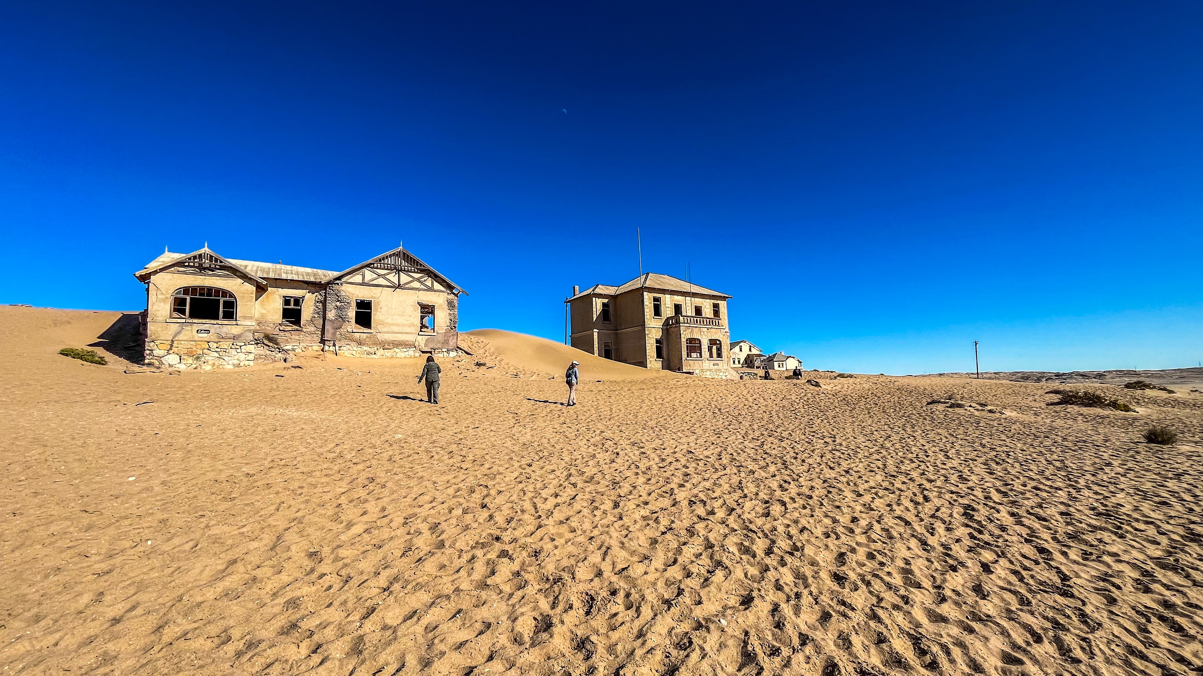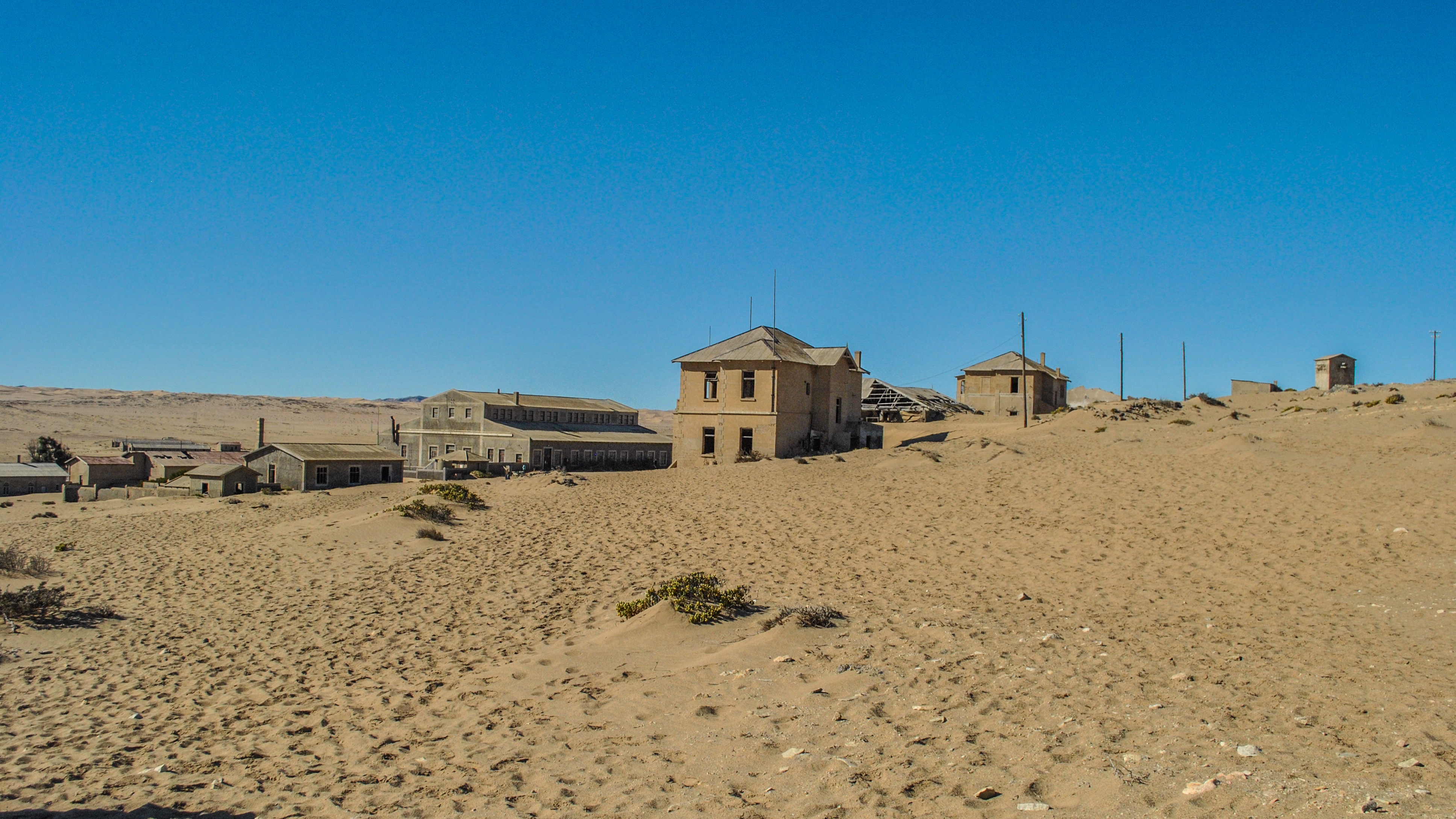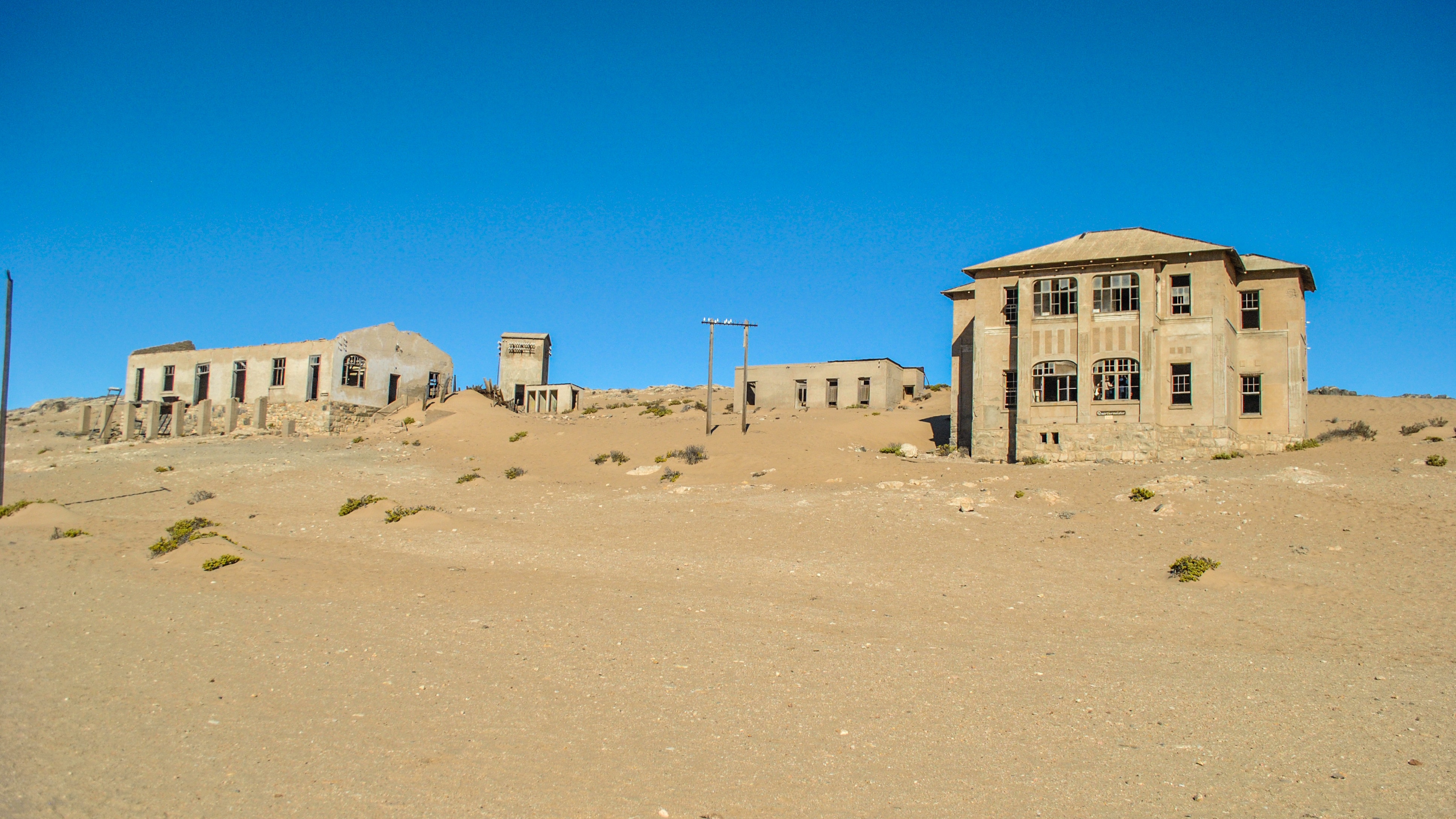 Com arquitetura germânica, Kolmanskop se desenvolveu e chegou a ter 300 adultos e 40 crianças, além de 800 mineiros. Em suas poucas ruas era possível encontrar fábrica de gelo, açougue, padaria, cassino e hospital.