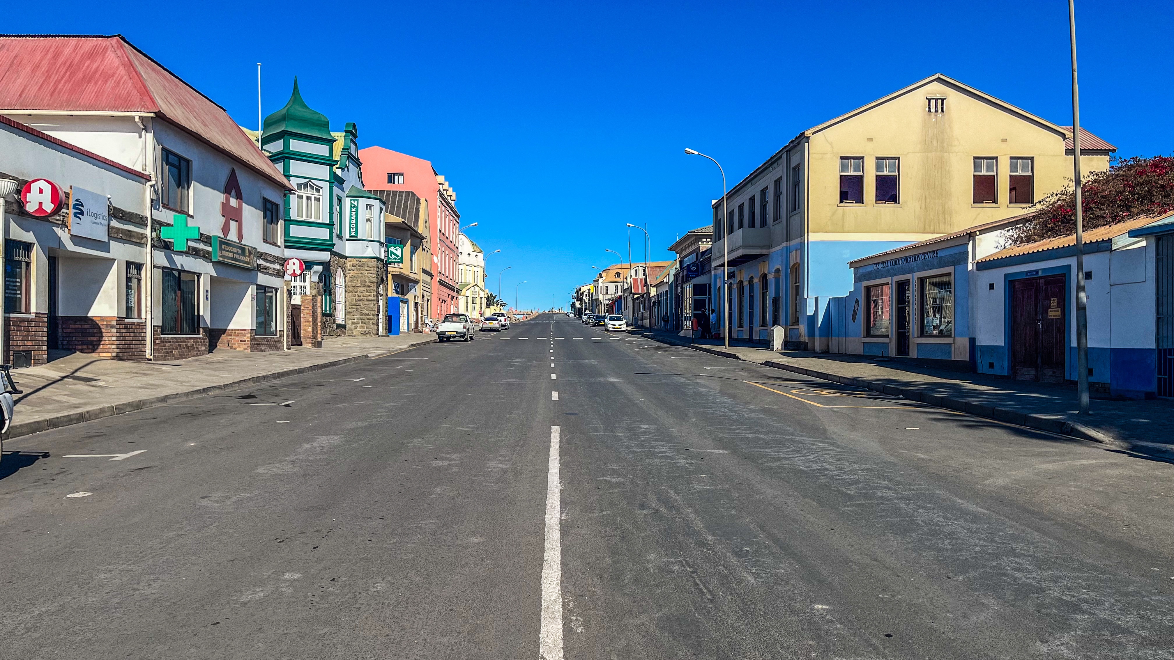 De lá, partimos para Lüderitz, uma cidade tipicamente germânica na costa. Mas não sem antes ter mais um perrengue. Em um trecho de estrada de brita, um outro pneu furou, e só percebemos depois de rodar um tanto com ele. Desta vez, sem ajuda externa, trocamos o equipamento danificado. No caminho, paramos no acostamento para comer o resto do jantar do dia anterior.