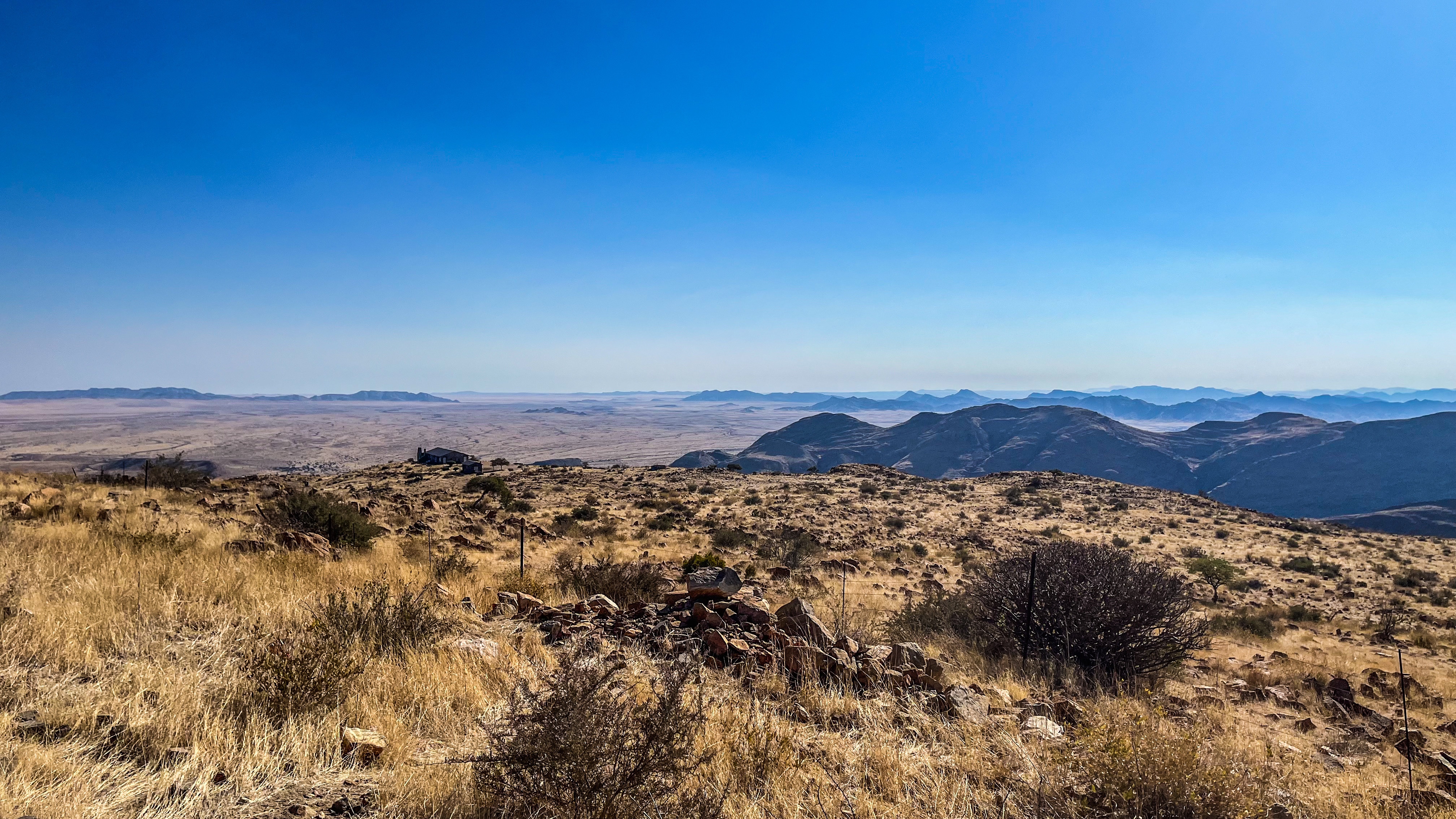 Contornamos o cânion e nos dirigimos à Canyon Roadhouse, um camping próximo à entrada do Fish River Canyon, nosso destino do dia seguinte. Há uma hospedagem dentro do parque, mas é mais cara, algo comum na Namíbia. Normalmente há opções do lado de fora dos portões, mais em conta, para viajantes que não se importam em se adequar aos horários de funcionamento do destino almejado.