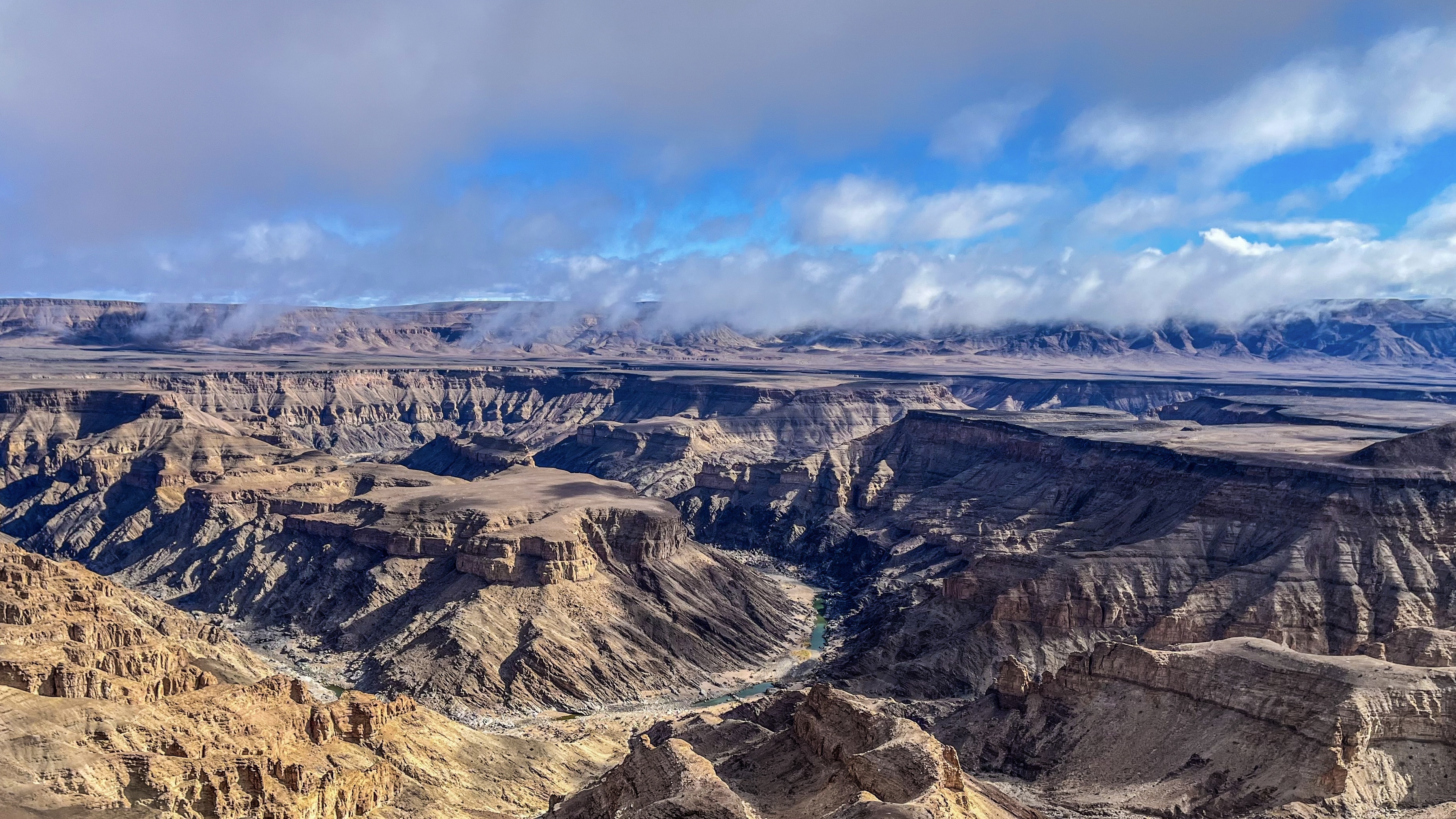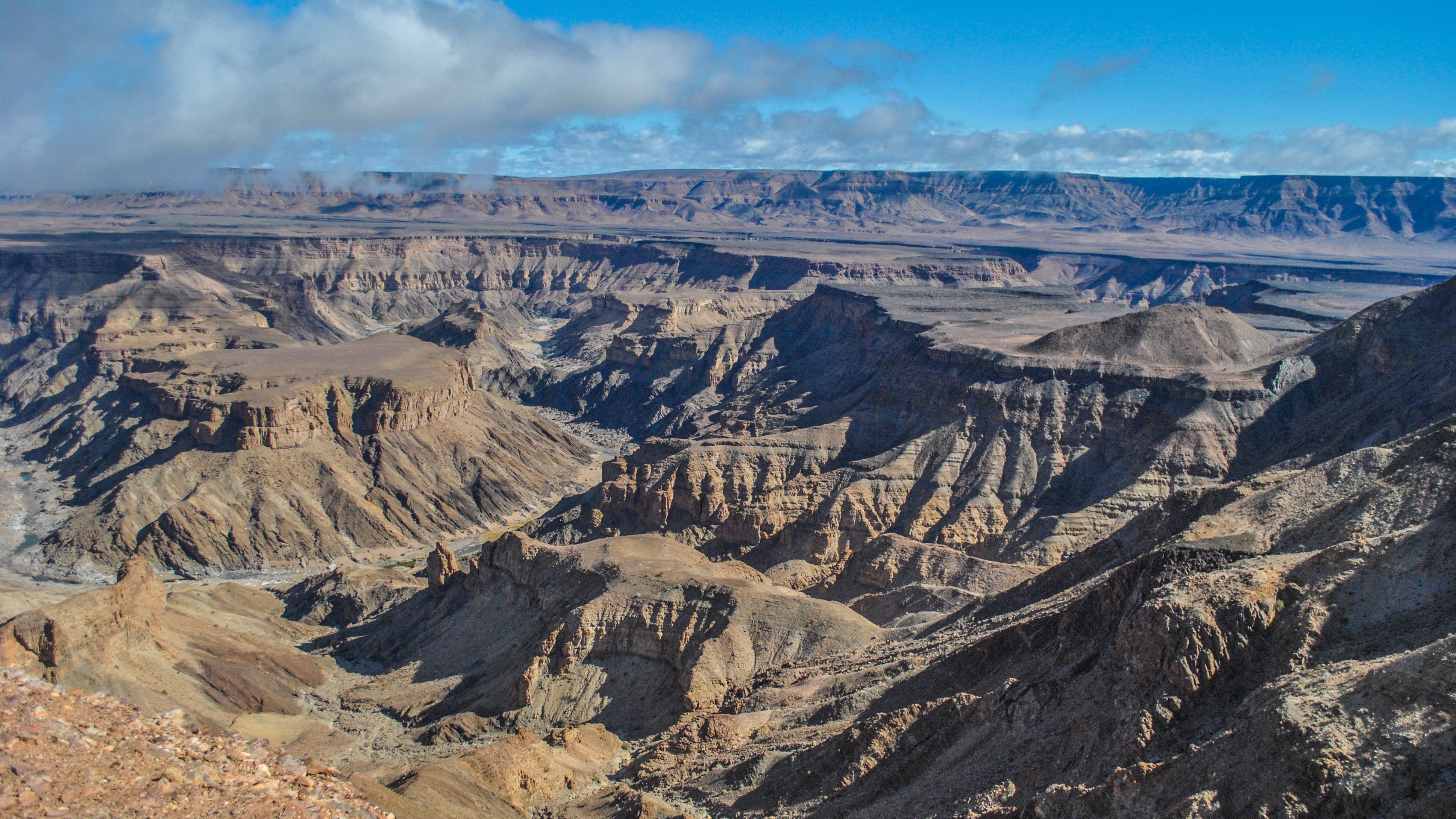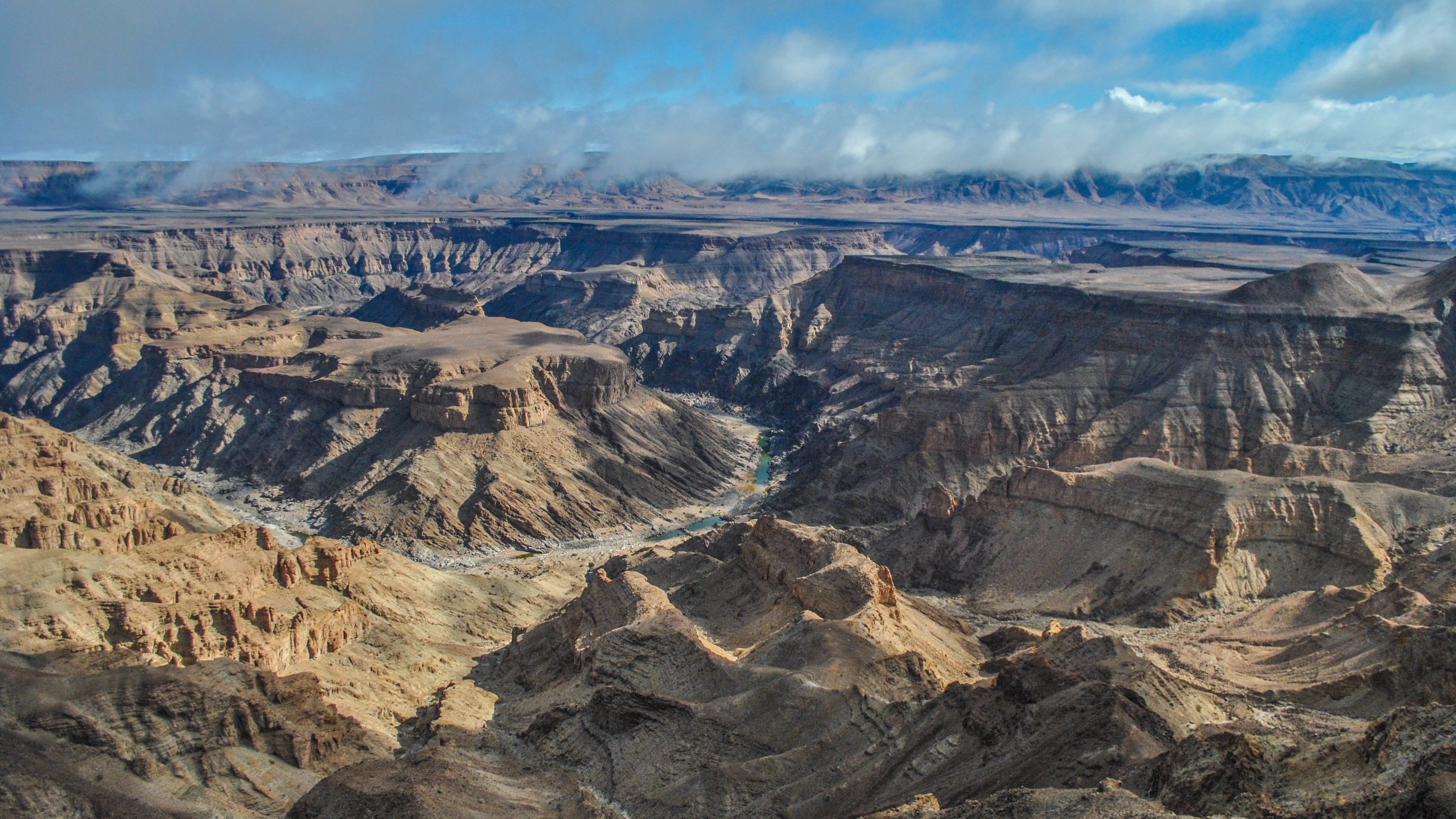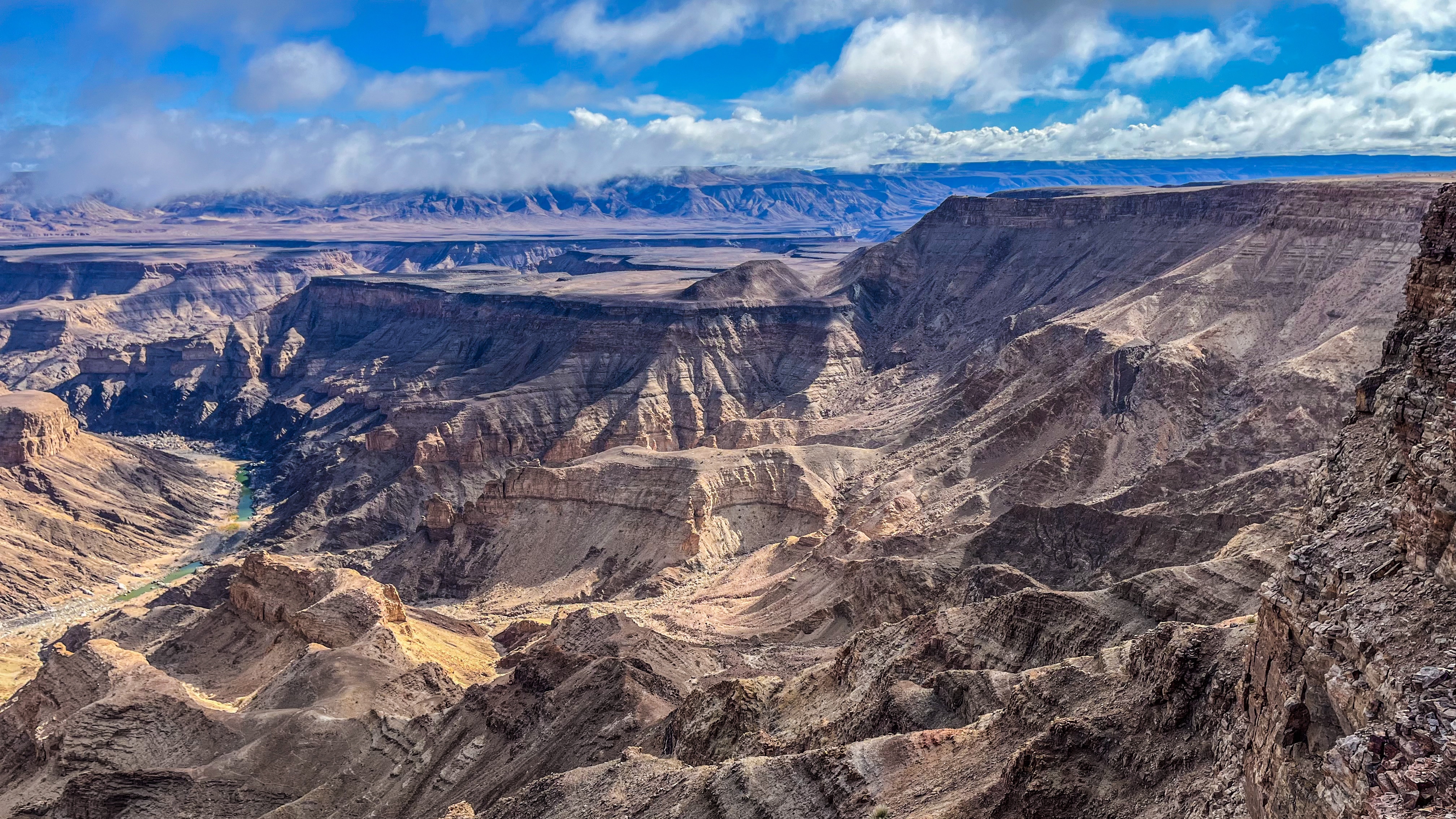 Logo cedo chegamos ao parque, cuja entrada custa 150 NAD (R$ 40,50) por pessoa, além de 50 NAD (R$ 13,50) por carro. Por esse valor, acessamos vários mirantes do Fish River Canyon, o maior cânion da África e o segundo maior do mundo, ficando atrás apenas do Grand Canyon, nos EUA.