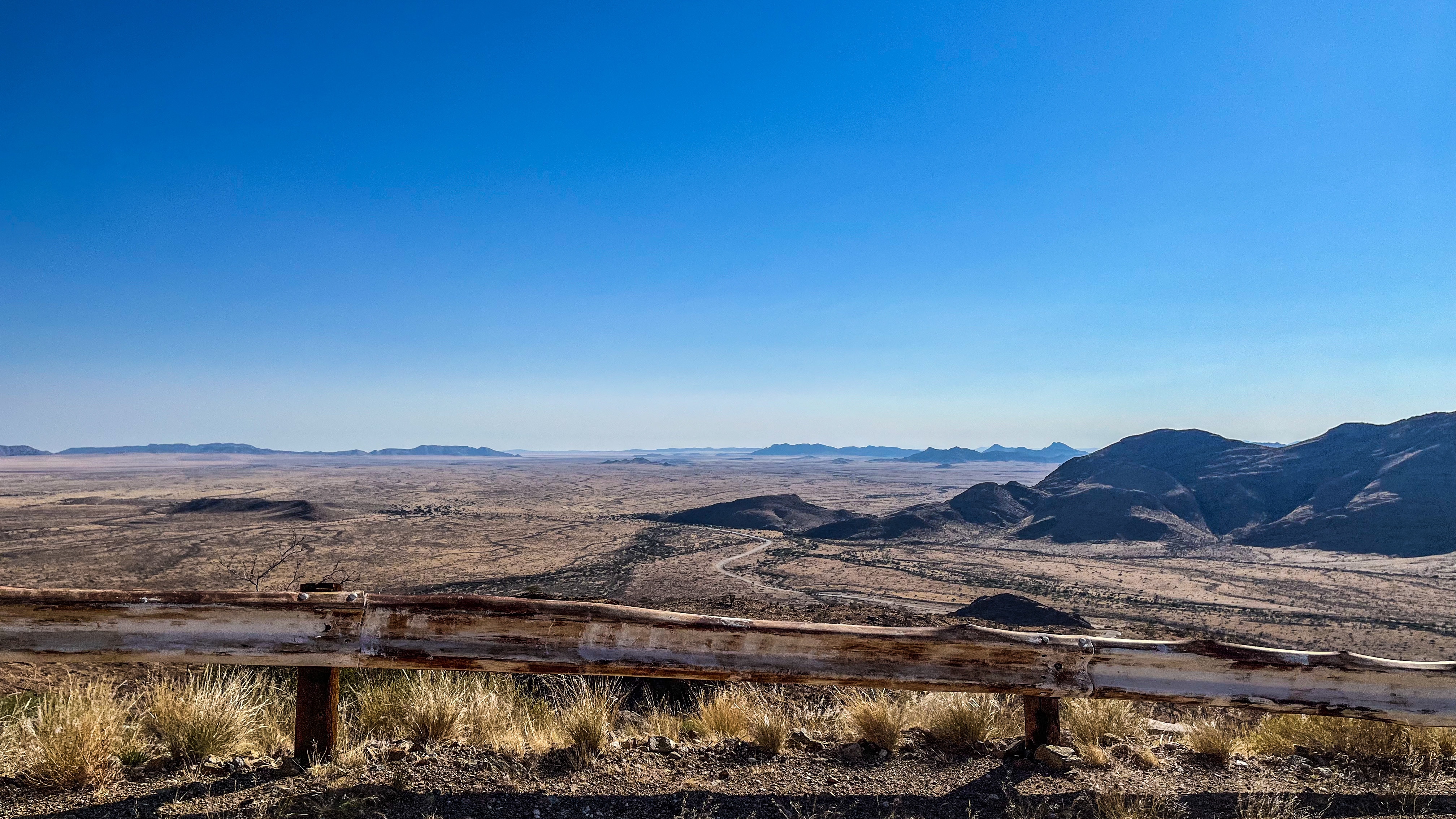 O roteiro da nossa viagem era praticamente um círculo, pois desceríamos o país pelo lado oeste e subiríamos até a capital pelo leste. E, no 5º dia, chegou o momento de começar a voltar. Assim, viajamos em direção à fronteira com a vizinha África do Sul. E que paisagem nos esperava, hein.