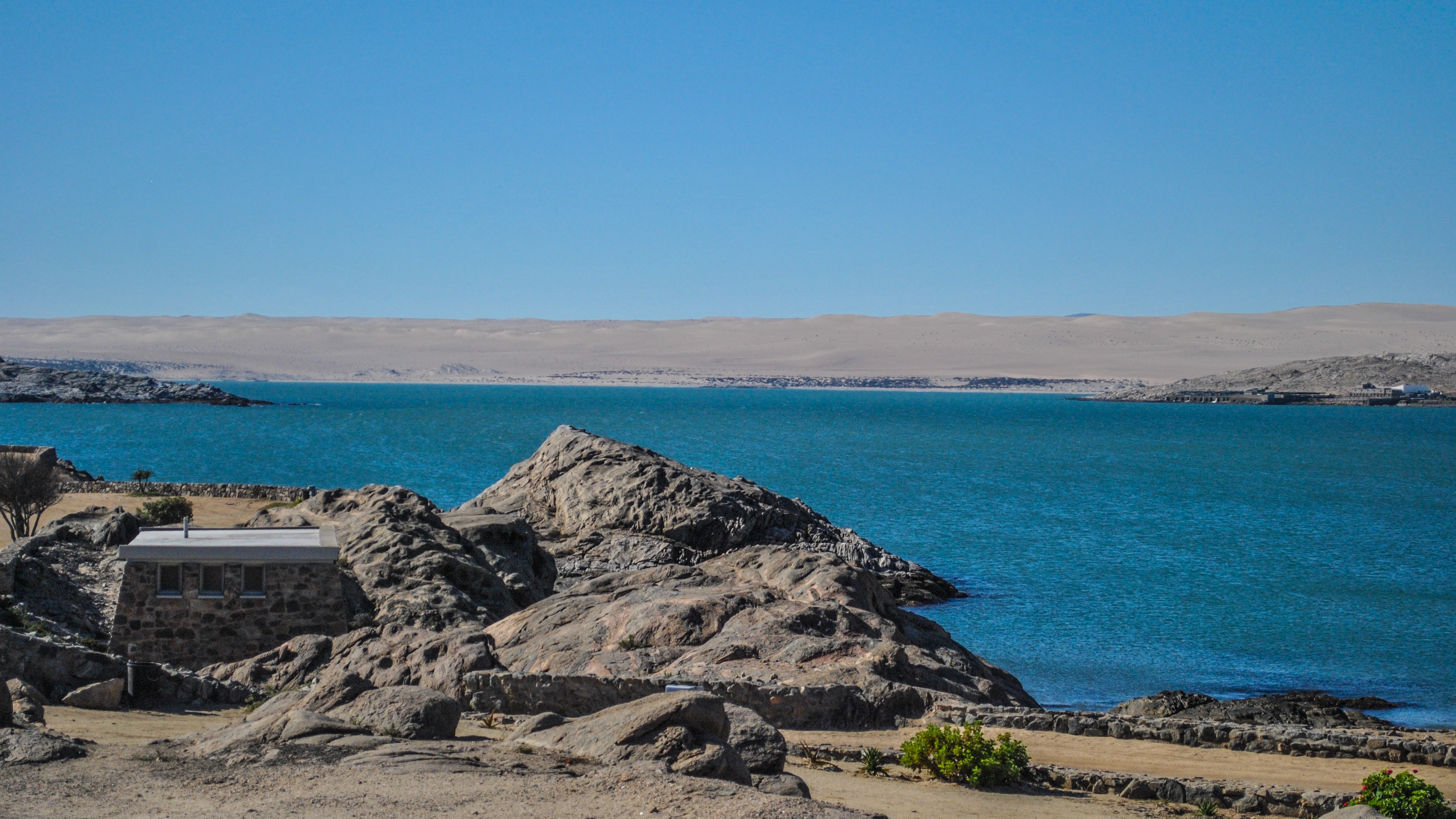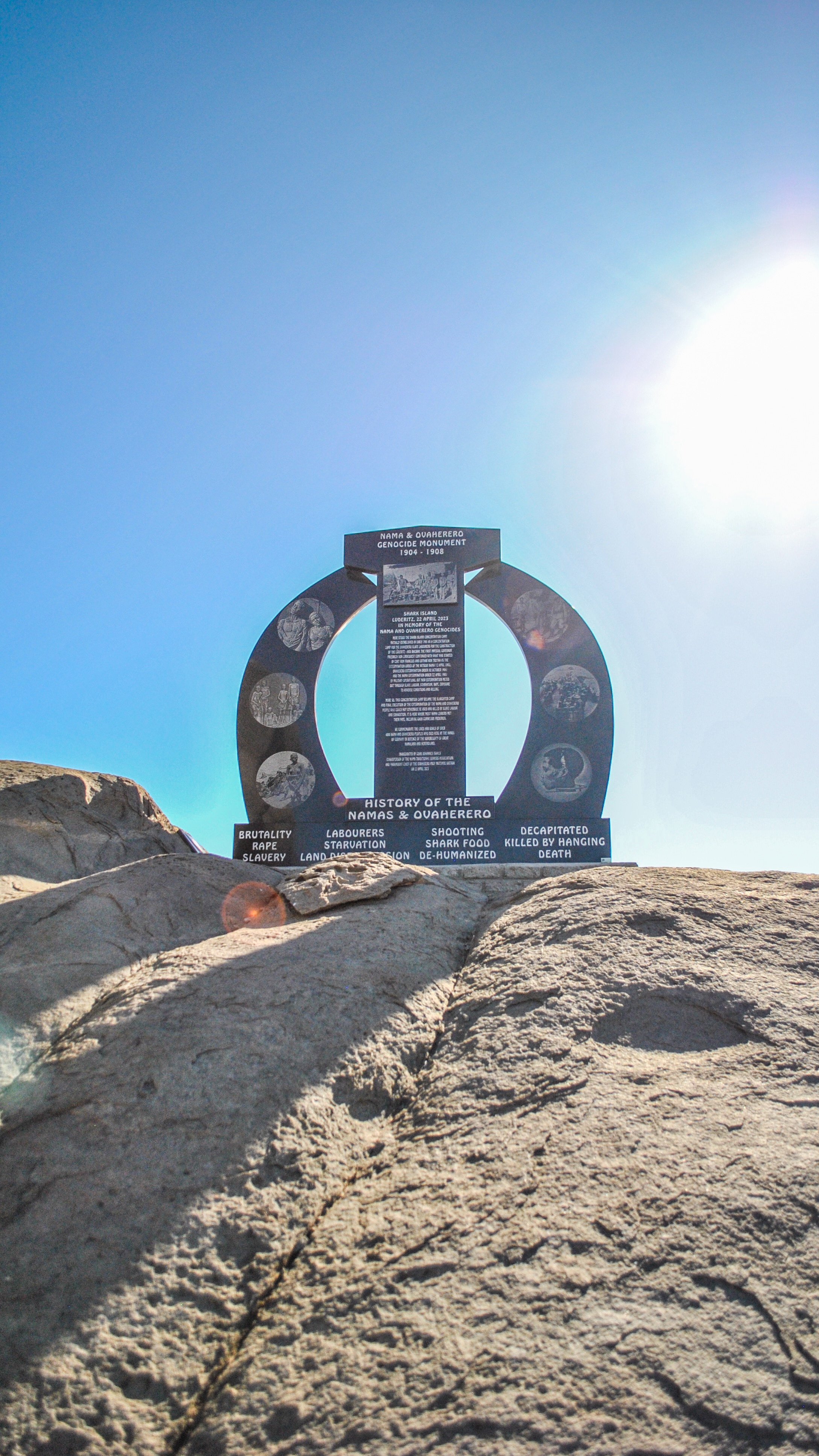 Alimentados, fomos ao Shark Island, local onde, de 1904 a 1908, sob o governo alemão, houve um genocídio de povos originários. Lá, pessoas eram decapitadas e esquartejadas, e seus membros eram jogados no mar, o que atraía tubarões.