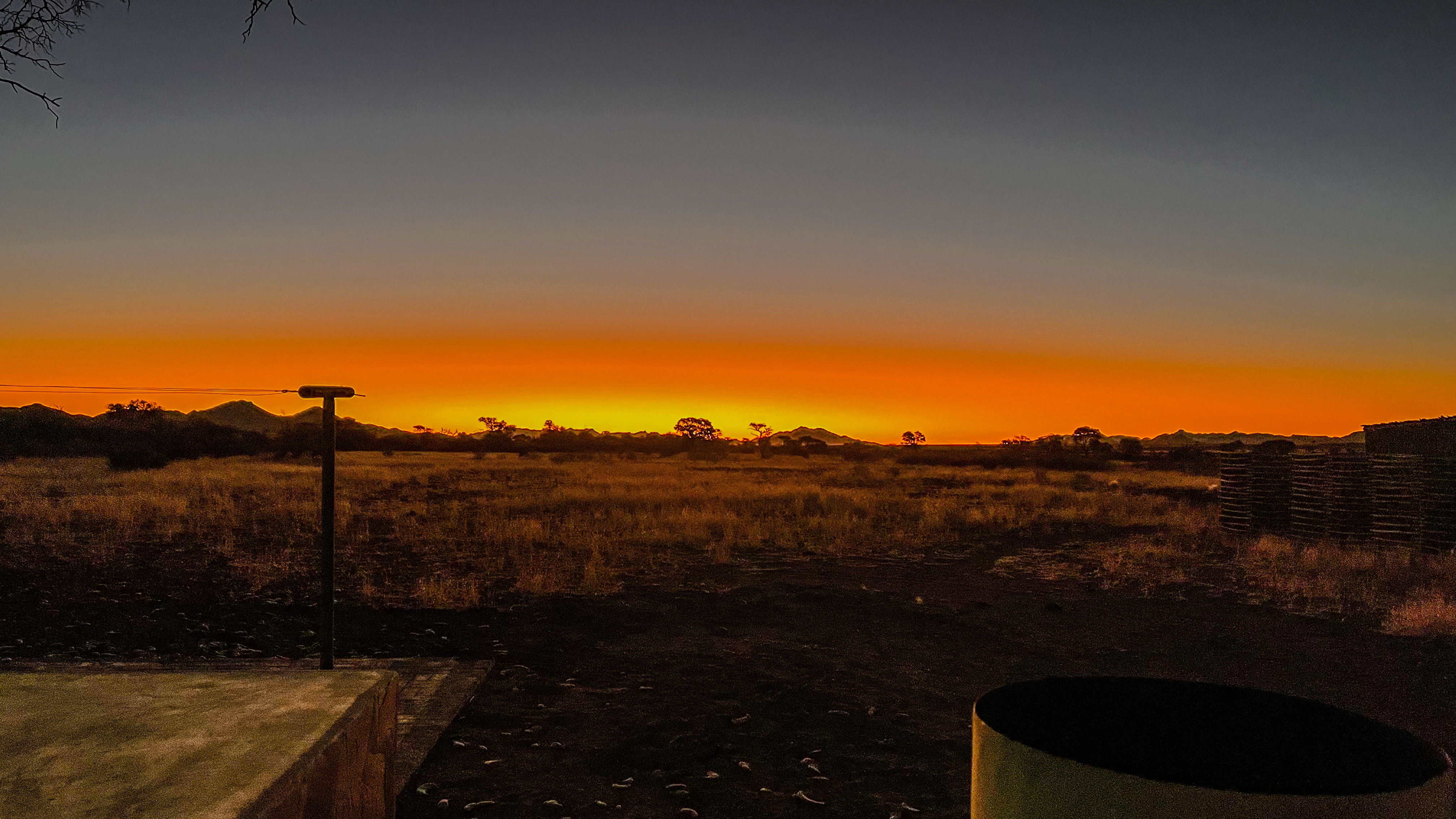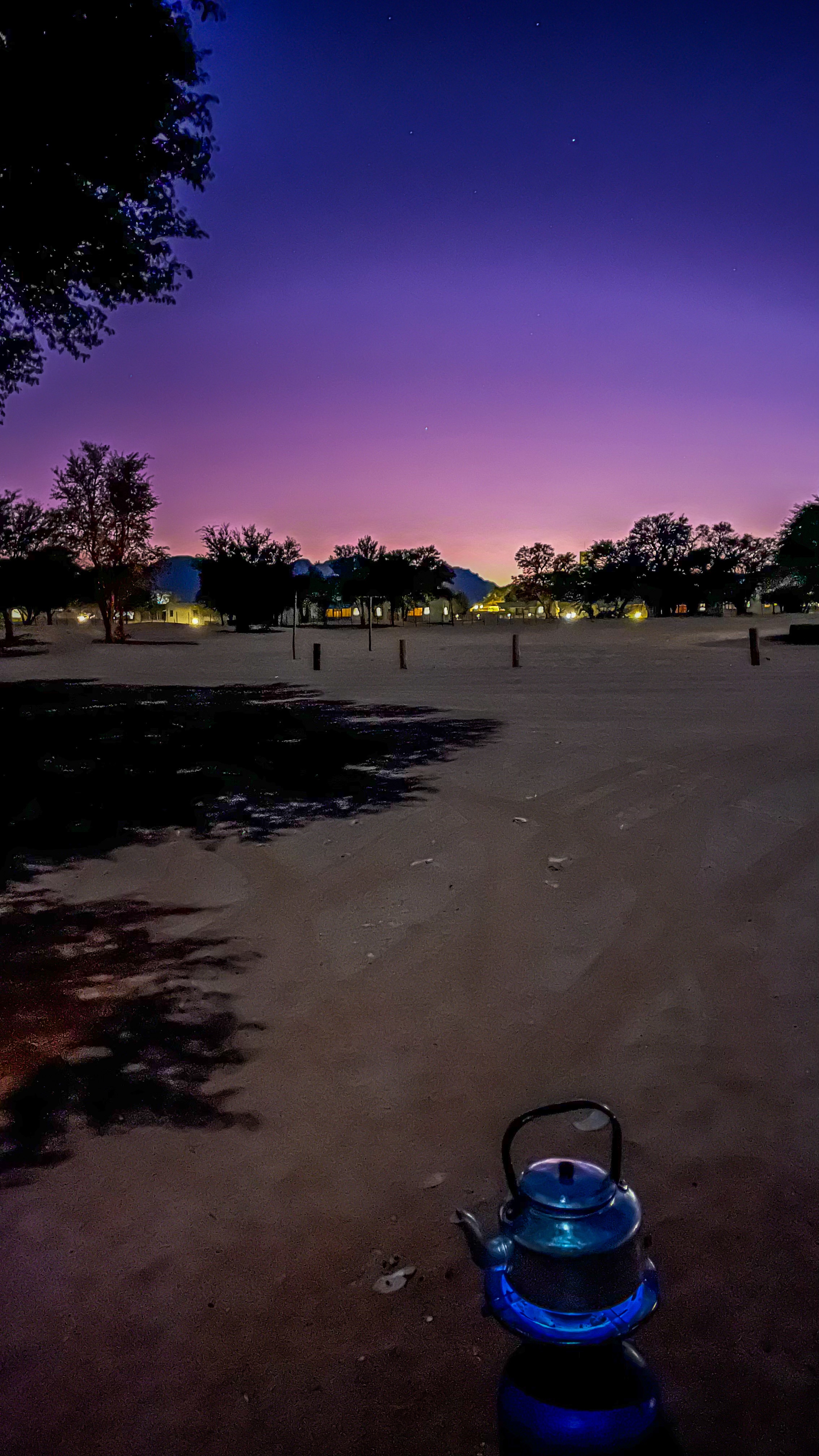 Escolhemos o Sesriem Campsite – NWR por ficar dentro do parque, o que nos permitiria partir uma hora antes de os portões abrirem, ou seja, 6h30. No fim, não valeu tanto a pena. Saímos 7h15, o sol nasceu 7h45, e o custo-benefício do local está longe de ser dos melhores.