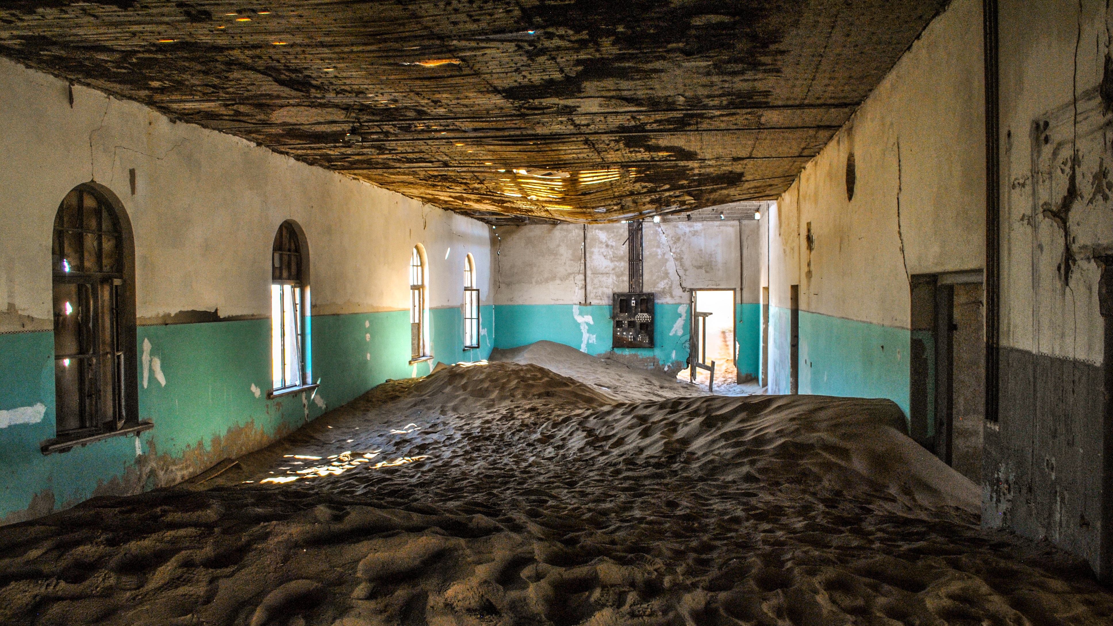 Com a regulamentação da extração, o esgotamento das pedras preciosas e a descoberta de uma nova mina em outro local, Kolmanskop começou seu declínio e, nos anos 1950, deixou de ter moradores. Os anos se passaram e a areia tomou conta do lugar.