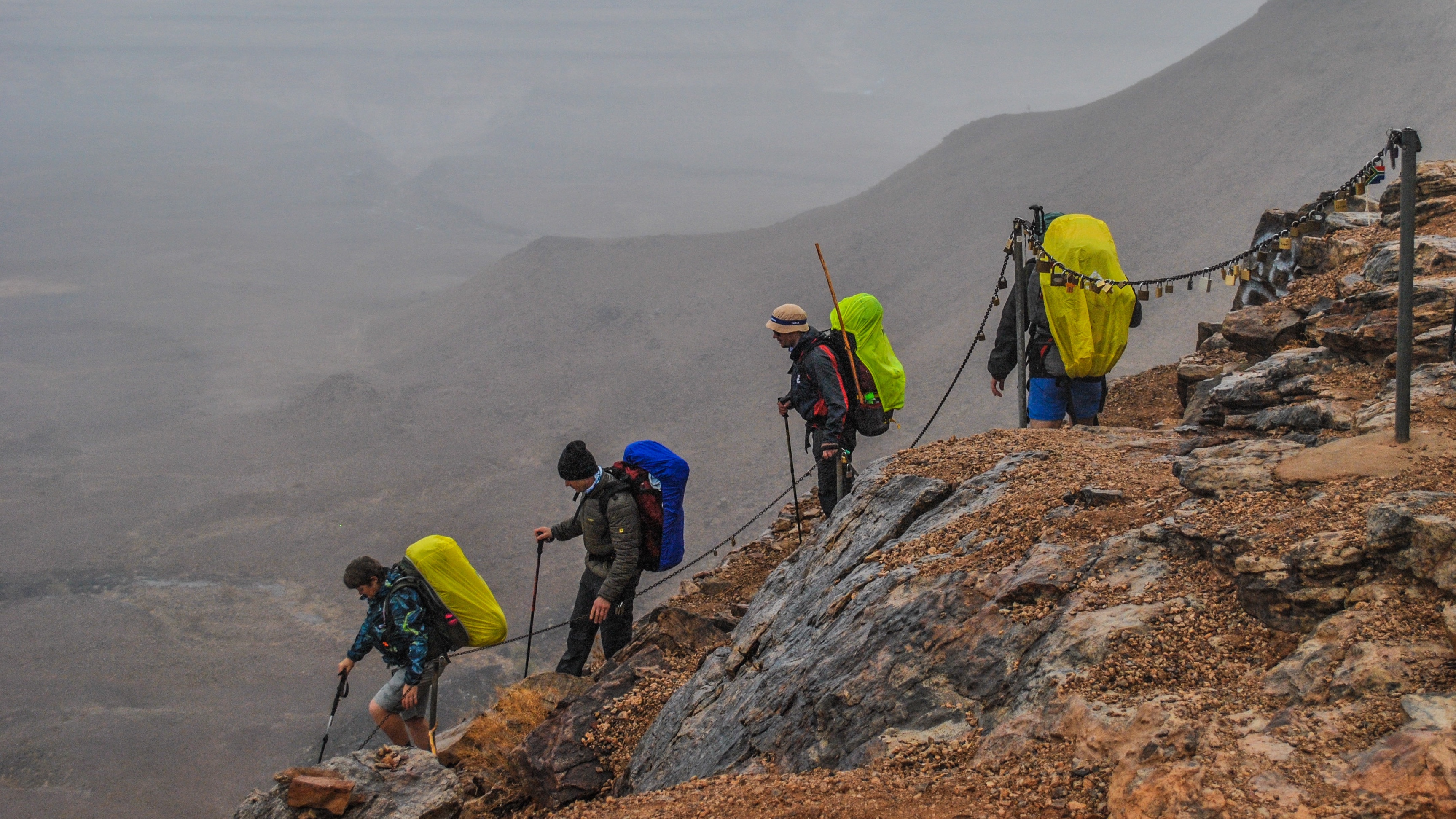 No meio da tarde chegamos ao nosso último camping, um local árido em que o dono, com muita inventividade, criou um espaço com os banheiros e pequenas proteções contra o vento forte, a 180 NAD (R$ 48,50) por pessoa. O empreendimento era simples, mas o ambiente era sensacional, com diversas árvores típicas da região e um belo pôr do sol. Mais uma sessão de fotografia no dia.