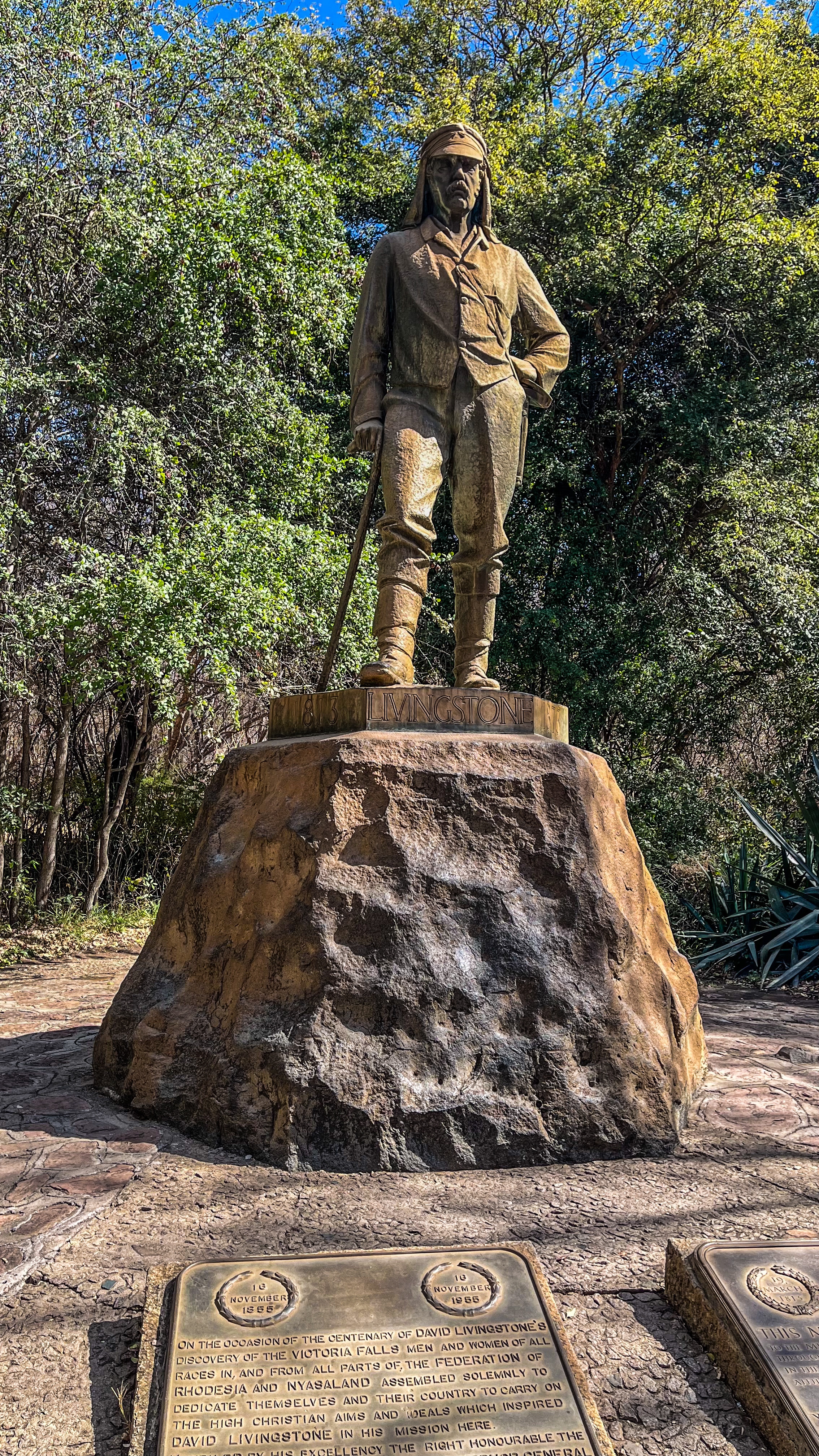 Há um caminho que leva à margem das cataratas e toda uma sinalização apontando os mirantes. No primeiro deles, surpreendendo um total de zero pessoas, fica uma estátua de David Livingstone, o “primeiro” europeu que chegou ao local e o denominou em homenagem à rainha Victoria.