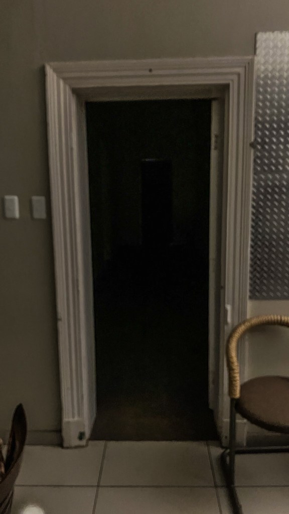 A cada porta o medo de ver algo aumentava, principalmente ao passar pela sala escura e pelas janelas, tão escuras quanto.
