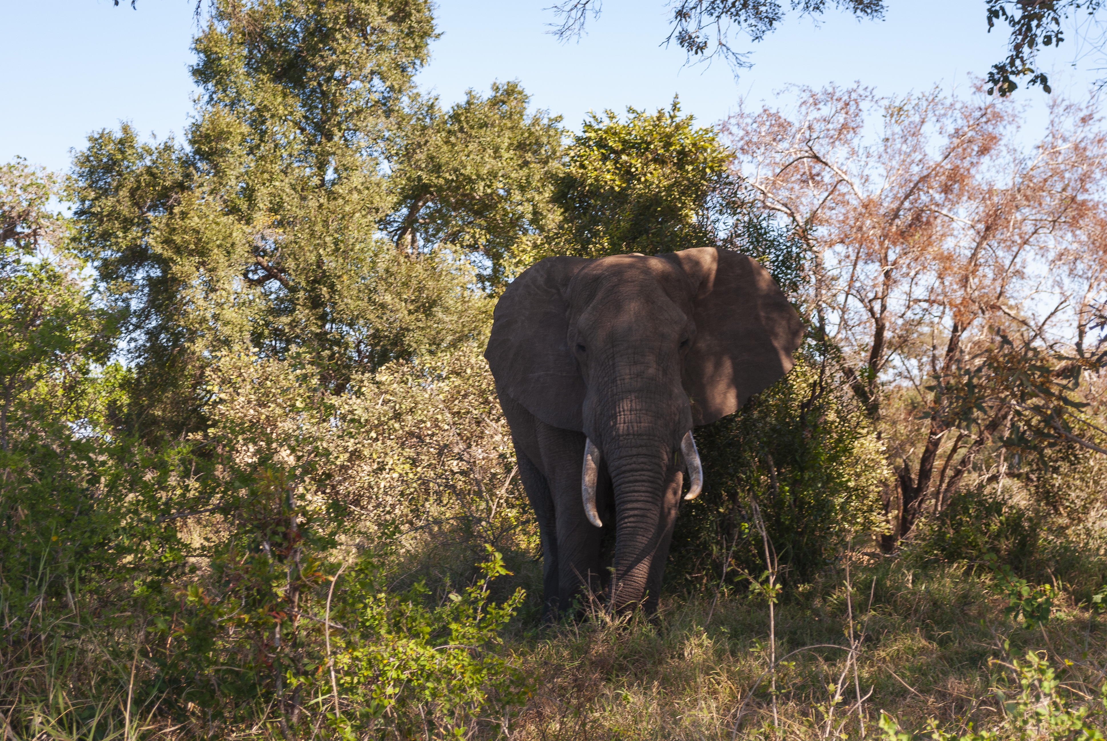 Em outro dia, em Botsuana, ao fazer a curva numa estrada fechada no meio do mato demos de cara com um elefante. Chegamos a pensar que nosso destino seria dar a ré ou ser atacado pelo bicho. Por sorte, ele se afastou e saímos sãos e salvos da situação.