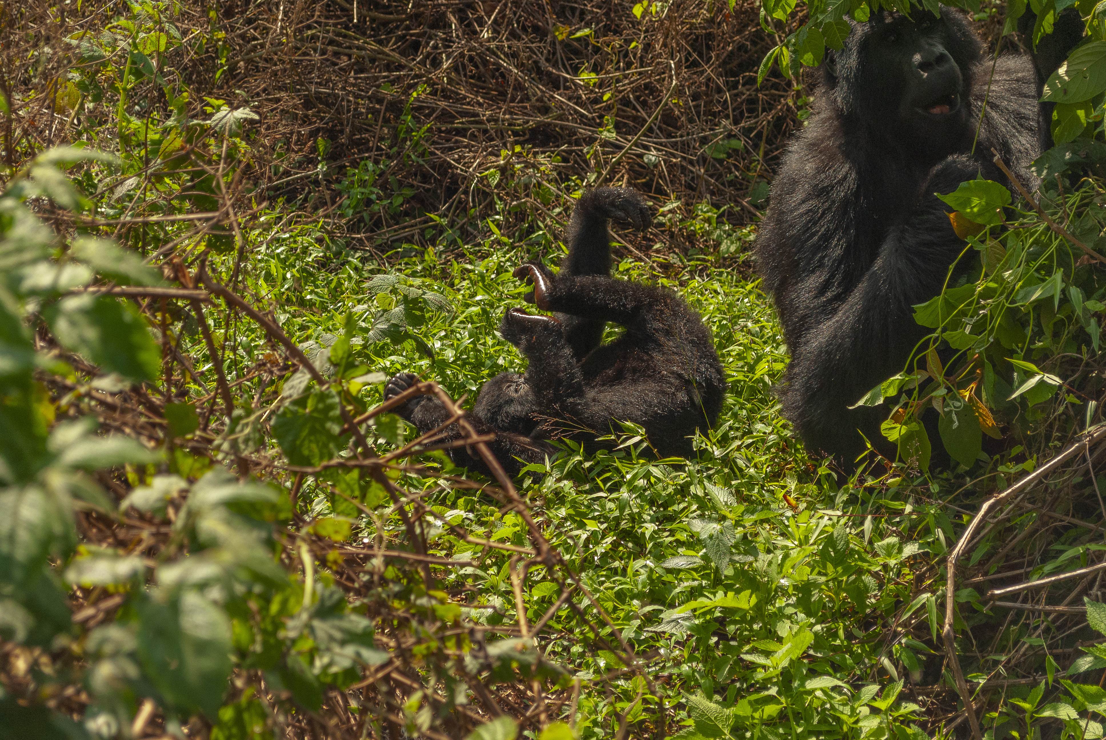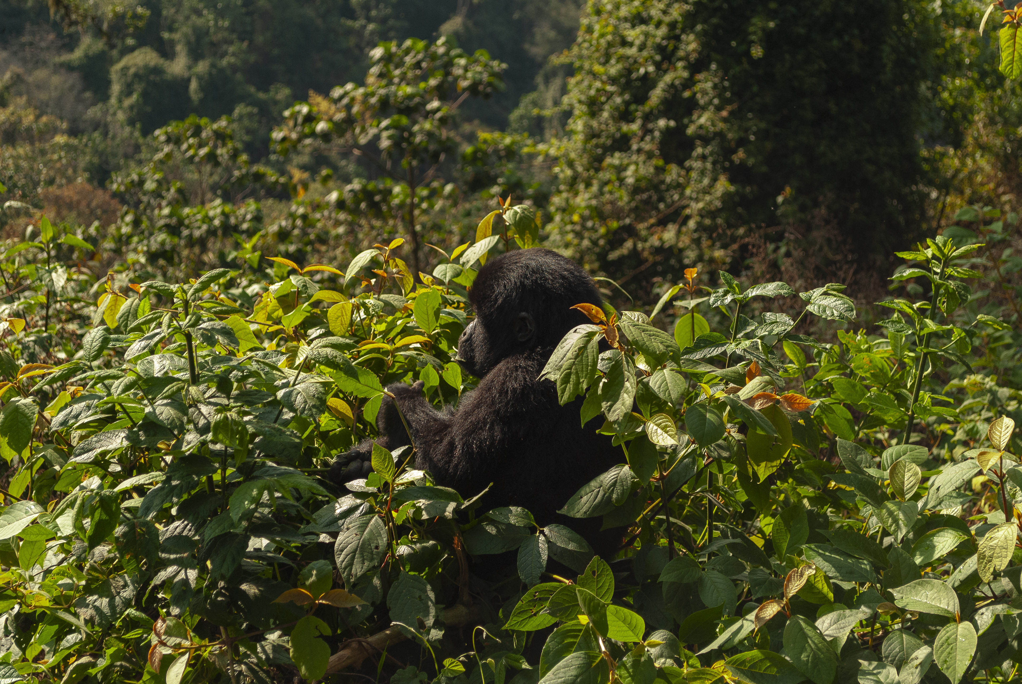 A experiência de observar os gorilas de perto é sensacional. Principalmente os filhotes, que ficam brincando e brigando entre si como humaninhos. É difícil não querer abraçá-los ou levá-los na mochila.