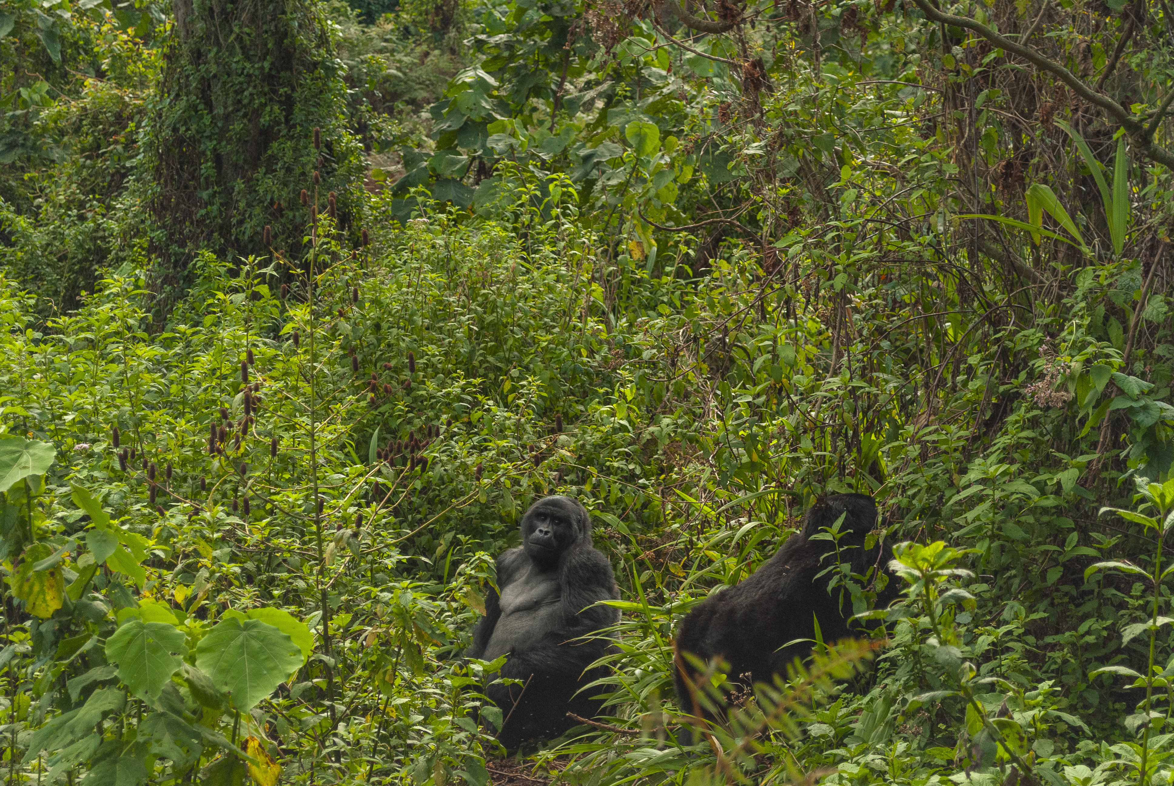 Pesou na nossa apreensão dois relatos de viajantes sobre os primatas. Enquanto Fábio Zanini, autor de “Pé na África”, andou muito tempo e ainda precisou mudar de família de gorilas, chegando a umas 4 horas de caminhada, Filipe Morato Gomes, do blog almadeviajante, precisou sair mais cedo porque o grupo de animais estava se locomovendo muito rápido, mas deu sorte e levou “apenas” 2 horas.