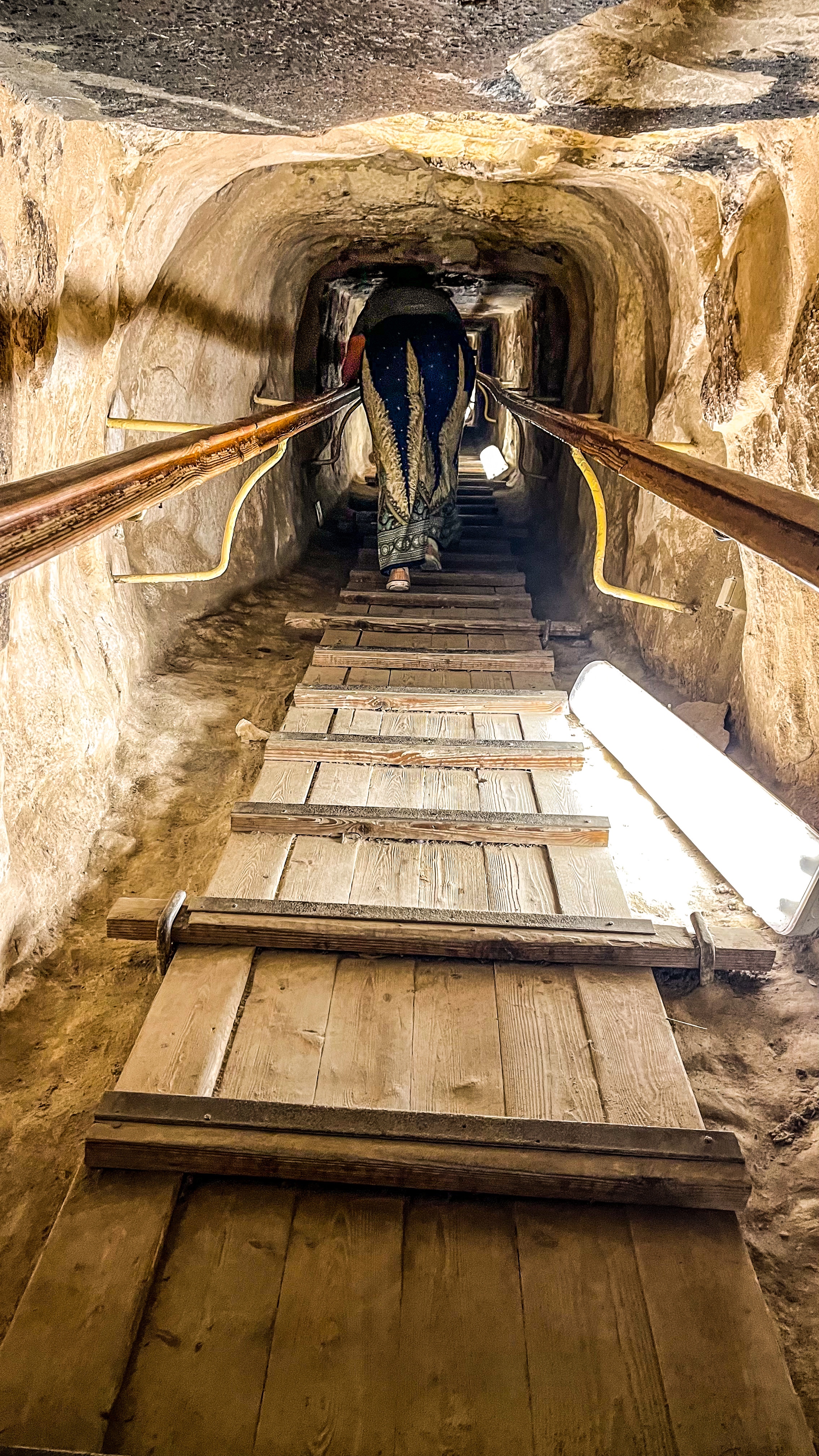 Ainda assim, entrar na pirâmide, uma maravilha do mundo antigo, vale o esforço pela curiosidade de ver como é a construção por dentro. Utiliza-se o claustrofóbico caminho dos obreiros. É uma subida por um túnel apertado, que depois fica amplo e depois fica apertado de novo. É uma sauna, mas entrar numa estrutura de 2.500 AEC não tem preço —de verdade.