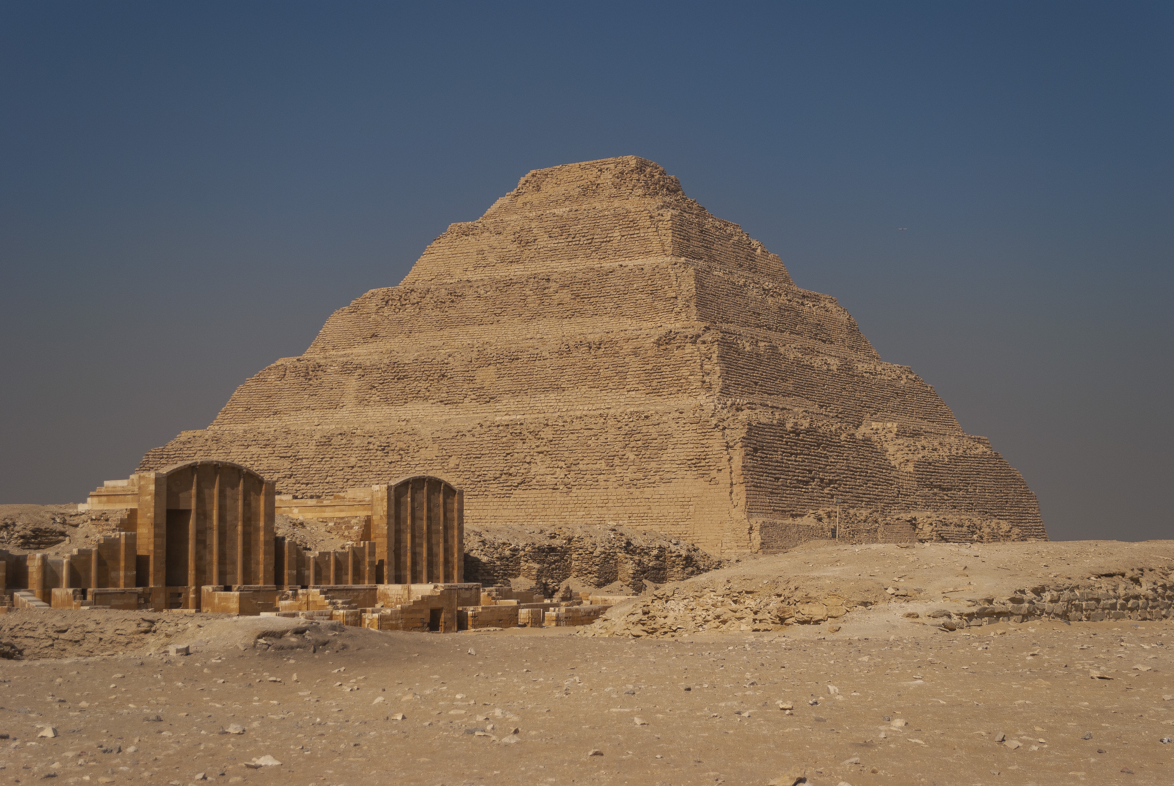 Em Sakkara, Imhotep levantou no século 27 o primeiro exemplar desse tipo de construção a mando do faraó Zoser, a pirâmide de degraus, cujo complexo replica a disposição interna do seu palácio. Eles acreditavam, antigamente, que poderiam aproveitar após a morte os mesmos benefícios de quando estavam vivos.