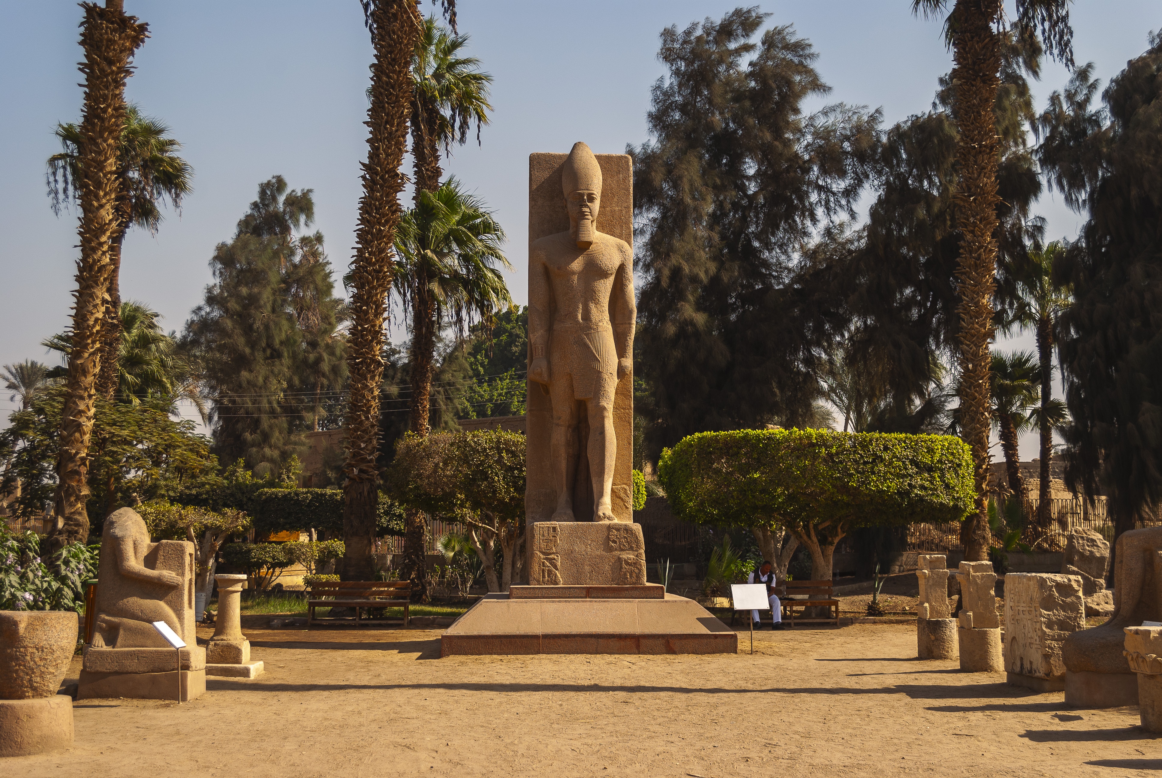 Além das pirâmides, o passeio incluiu uma ida à primeira das 14 capitais ao longo da história egípcia, Memphis. Lá é possível visitar o Museu Mit Rahina, que abriga as ruínas da cidade e várias estátuas antigas. A mais chamativa é a do faraó Ramsés 2º, com mais de 30 de metros —o prédio foi erguido em volta dela.