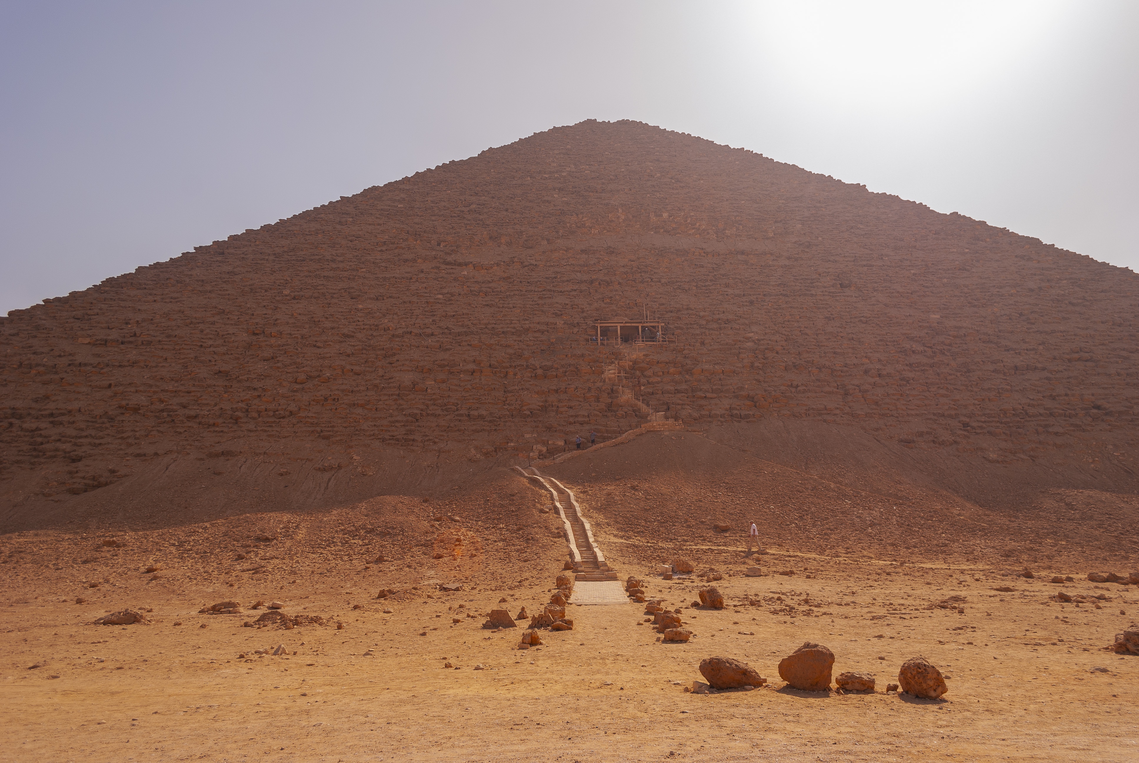 Já em Dahshur ergueram o segundo e o terceiro exemplares: a pirâmide curvada e a vermelha, respectivamente. A primeira tem esse nome porque, no início, começaram a levantar as paredes com ângulo de 75°, mas, depois de verem que ficaria muito alta, adaptaram a angulação para 45°, o que deu um aspecto arredondado.