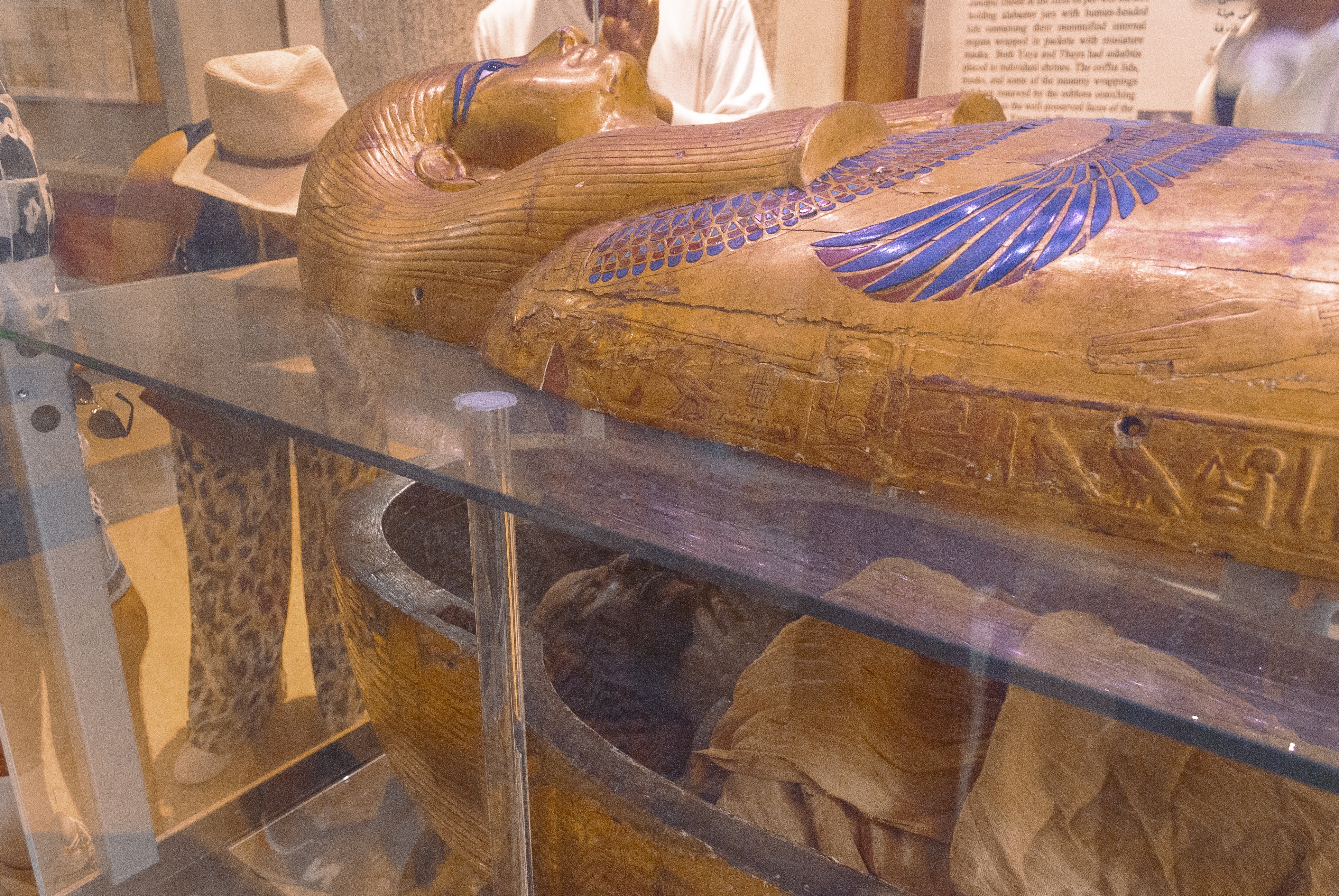 Quanto ao Museu do Cairo, lá é possível ver diversos sarcófagos, múmias e esculturas de diferentes épocas. Incrivelmente, ainda sobrou bastante coisa após os europeus passarem por lá. Há dois detalhes interessantes sobre os sarcófagos que vale destacar.