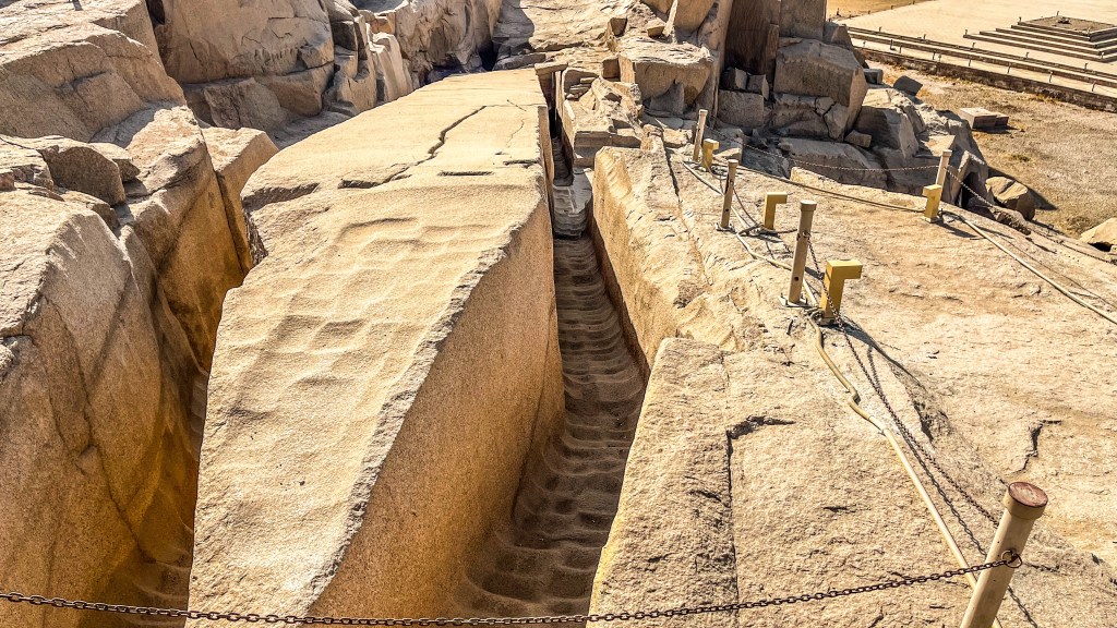 A cidade em si oferece, além de uma agradável orla à beira do rio Nilo, ao menos dois passeios históricos interessantes, que fizemos em uma tarde. Começamos pelo obelisco inacabado, sobre o qual nada se sabe. A obra em uma pedreira de granito vermelho, no entanto, ajudou a entender como eram feitos esses gigantes de uma peça só.