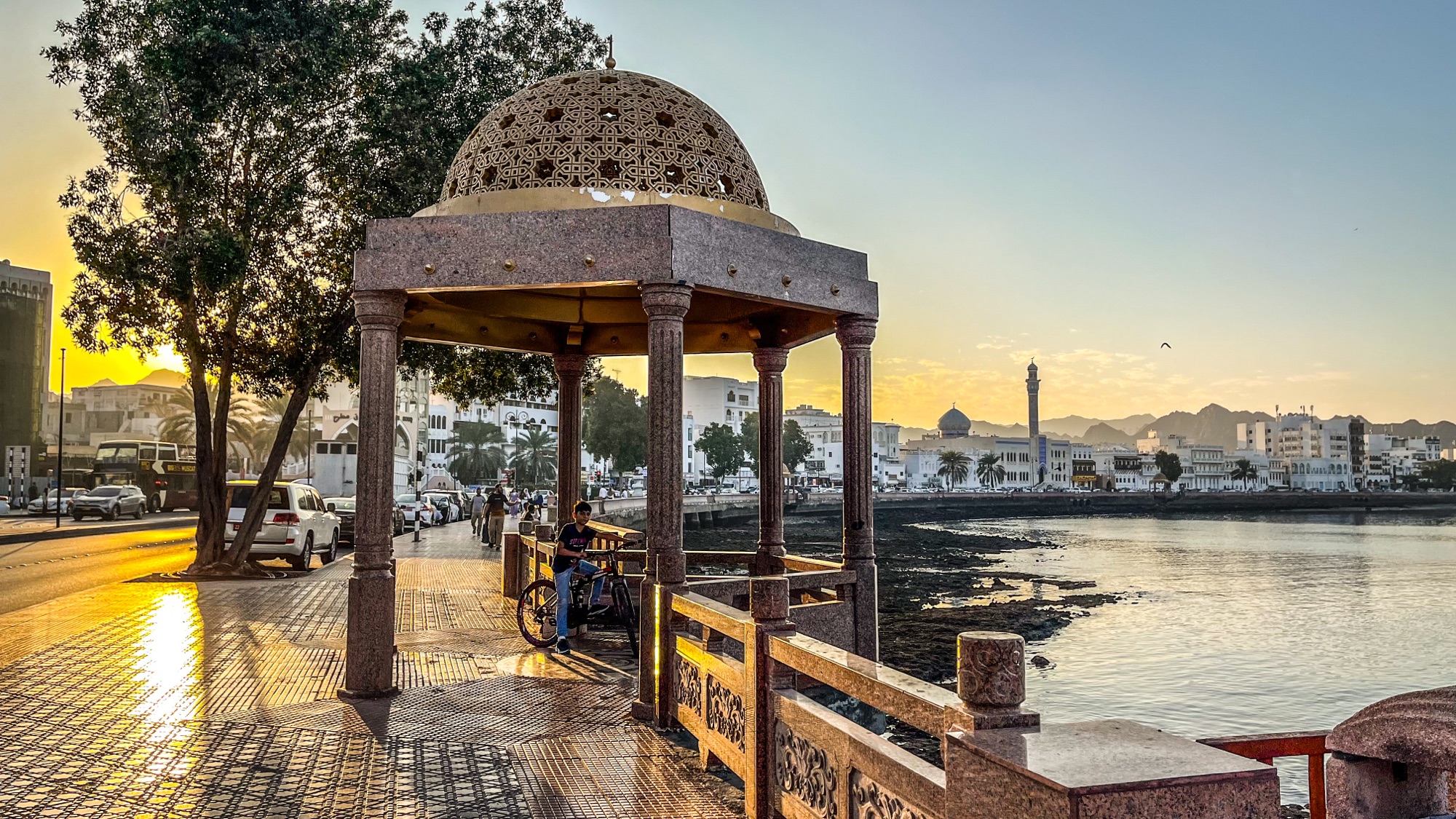 Essas duas atrações ficam de frente para o mar, e há uma calçada à beira da água bem convidativa para um passeio, e até mesmo para corridas no fim do dia. Pela corniche, é possível chegar a outro ponto que atrai muitos turistas, o Palácio de Al Alam, onde também fica o Museu Nacional —ainda que sejamos ratos de museu, deixamos o passeio para outro momento, pois já era meio da tarde.