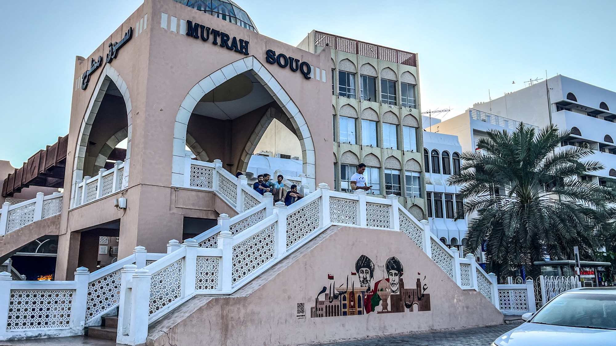 Duas grandes atrações de Mascate são vizinhas: o forte Mutrah e o souk de mesmo nome. Não entramos no primeiro, mas o segundo é bem prazeroso de se passear. Há muitas lojas de roupas ou suvenir, e pode-se caminhar por vias largas com pouca importunação dos vendedores —algo bem diferente das áreas semelhantes em outros países árabes, como Tunísia e Marrocos.