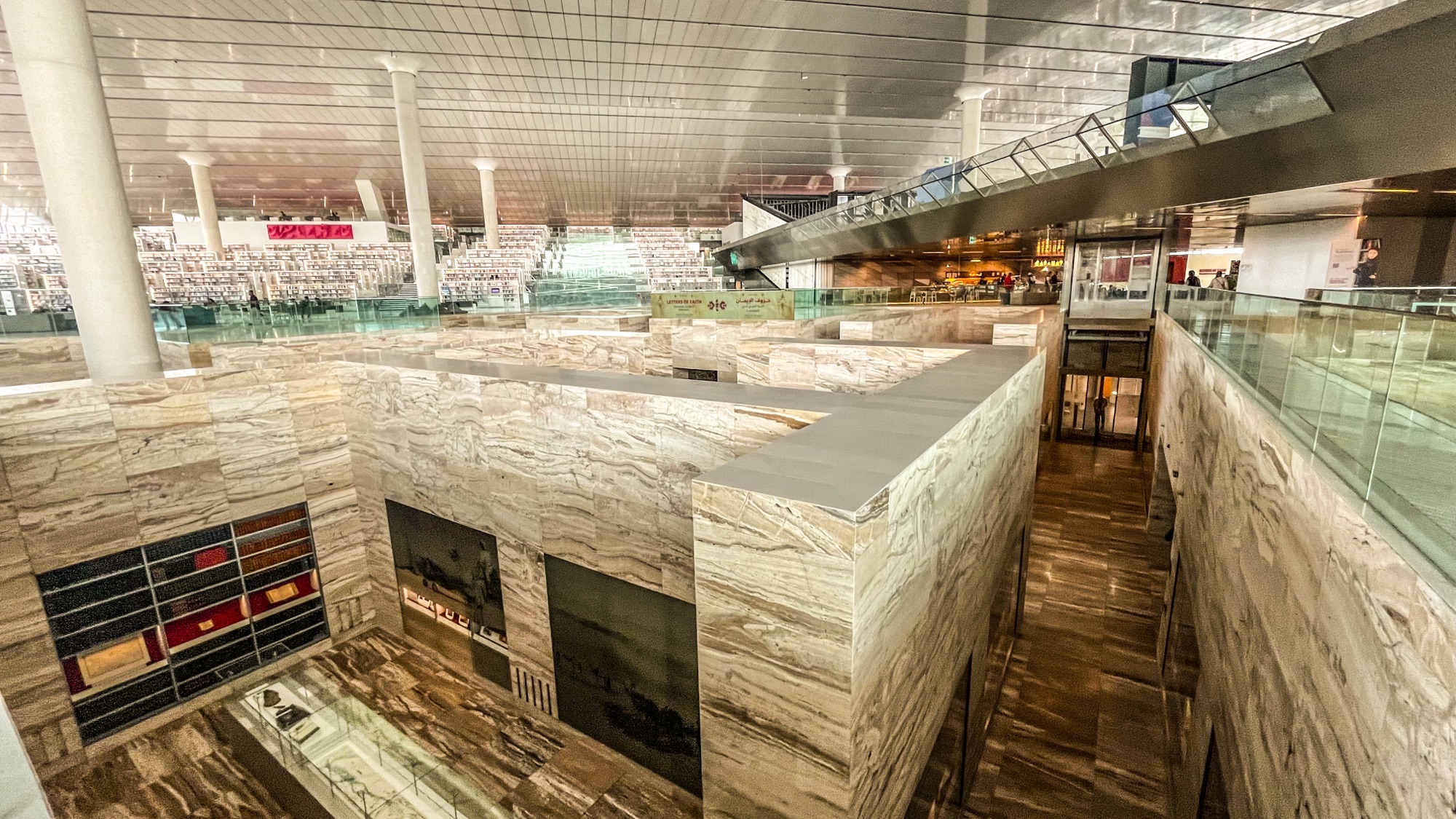 Acrescentamos no roteiro a partir da indicação de Anna, que mora por lá e faz parte, junto com o Faraó, de um grupo de leitores da newsletter Passageiro, do Matheus de Souza. E que acerto foi! A biblioteca é ampla e moderna, com livros em diferentes idiomas. Há um café dentro, com mesas e poltronas para quem quiser fazer do local o seu escritório —computadores também estão disponíveis. No andar subterrâneo, há uma exposição sobre o mundo árabe e da coleção privada dos emires qatarianos.