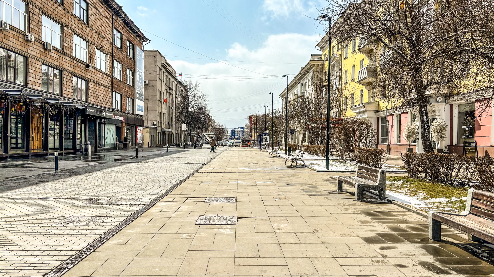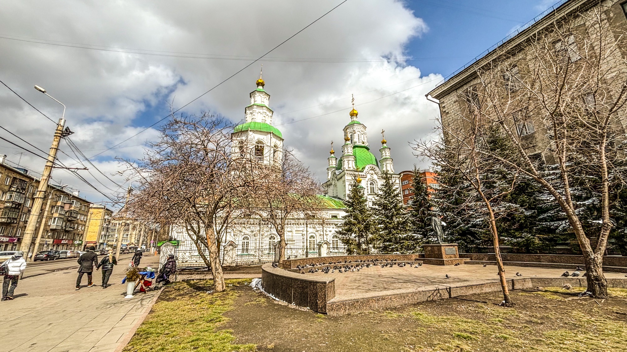 Em Krasnoyarsk, a 8ª maior cidade russa, vimos neve em pleno abril! O centro parece bem planejado, com quadras do mesmo tamanho e calçadas largas, por onde é agradável caminhar. Mas, ao contrário das primeiras paradas da nossa viagem de trem, não há muitos museus que nos interessaram.