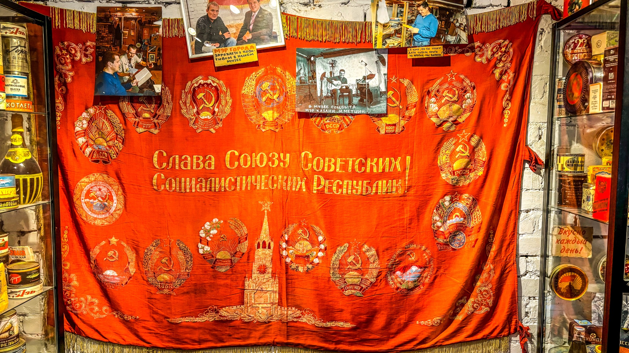 Por falar em história, fomos a dois museus que retratam o cotidiano da época do comunismo, o Museu da Vida Soviética e o da Infância Feliz. Os prédios (750 rublos/R$ 41,50), quase vizinhos, são do mesmo proprietário e possuem um rico e amontoado acervo, com muitas roupas, brinquedos, instrumentos musicais e acessórios. Dá a impressão de que o empresário compra peças usadas e as guarda ou pendura onde dá. Apesar do ambiente meio caótico, gostamos bastante.
