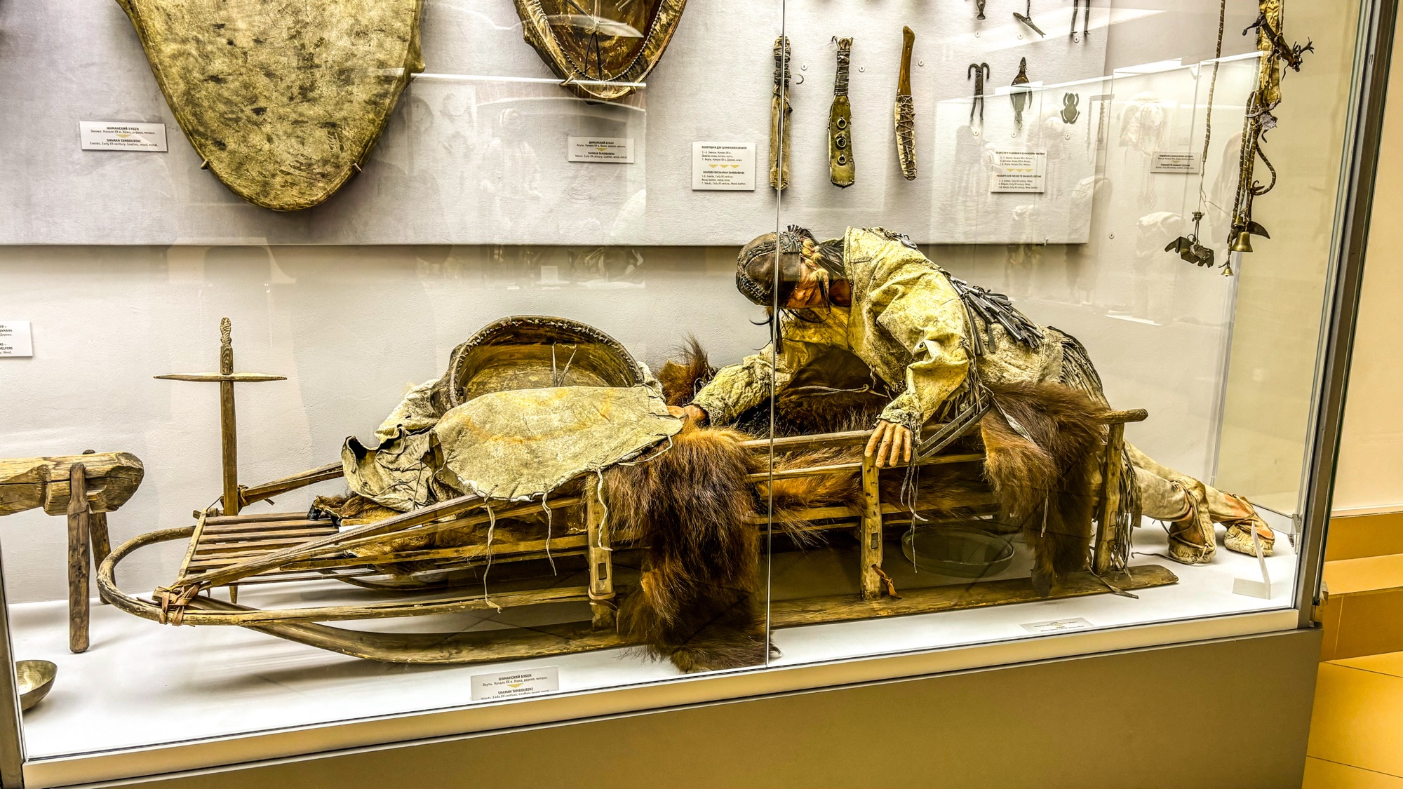 No centro está o Museu Kraievedtchesky, com exposições independentes (150 rublos/R$ 8,50 por pessoa). Optamos pela que conta a história da Sibéria e uma outra sobre Novosibirsk. Na primeira, roupas e acessórios mostram como era a vida de quem viveu ali nos últimos milênios. Na segunda, aprendemos sobre a importância da cidade no desenvolvimento da nação, desde a rota da Transiberiana até o período soviético, com o envio de soldados para as trincheiras e as grandes fazendas coletivas.