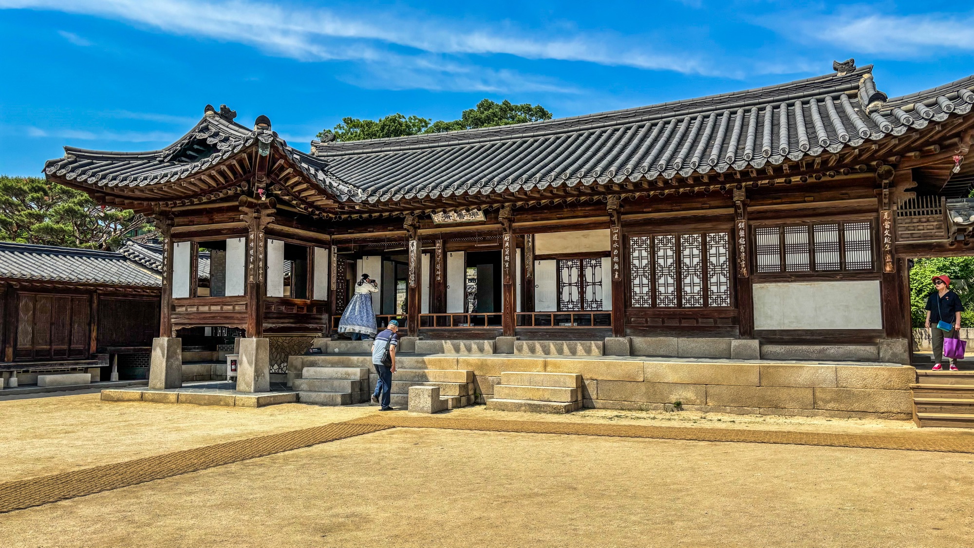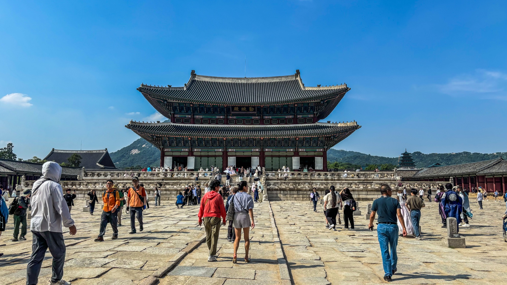 Visitamos os dois complexos onde estão esses prédios e outros menores. Por 3.000 wons (R$ 11,50) cada, pode-se caminhar pela área e ver de perto as construções que foram testemunhas da história coreana. O palácio Gyeongbokgung estava extremamente cheio de visitantes, numa quarta-feira, e muitos deles vestiam roupas tradicionais. Na bilheteria, descobrimos que quem estava com hanbok tinha entrada liberada.