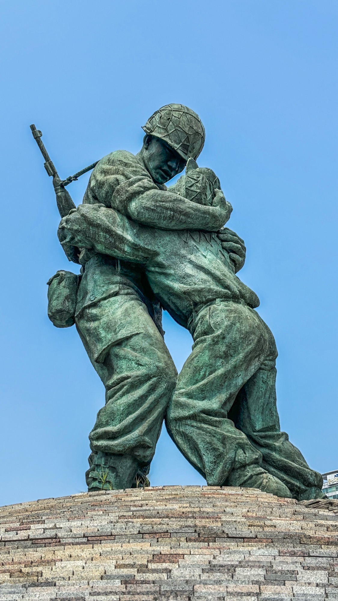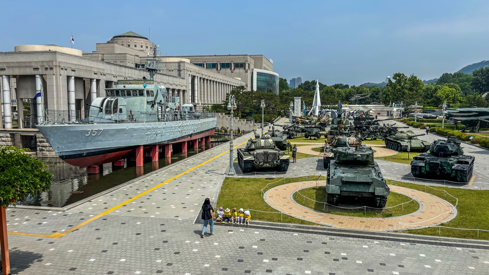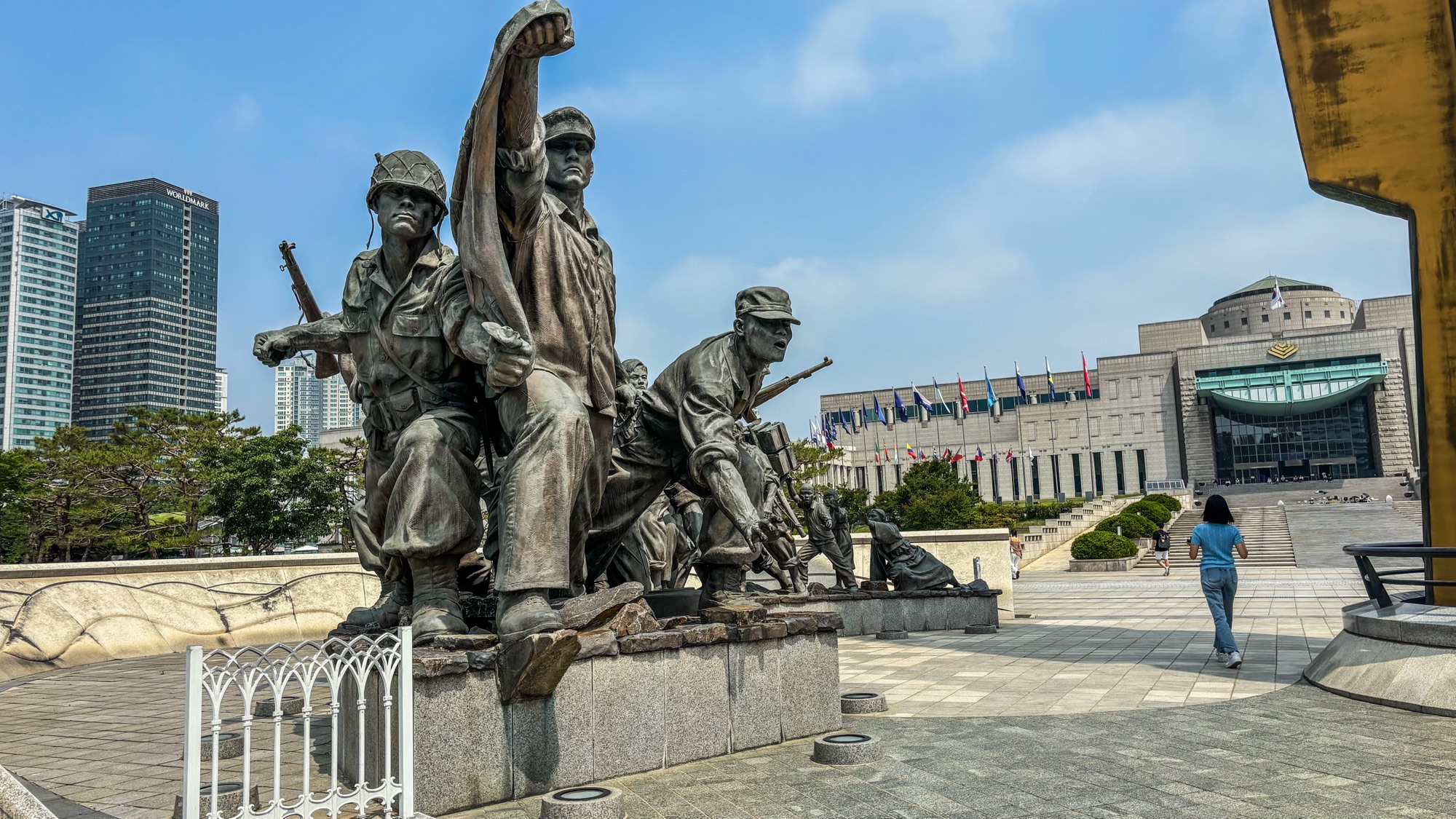 Por falar em história, visitamos o Memorial de Guerra da Coreia, que se dedica ao conflito na península entre os vizinhos do sul e do norte, de 1950 a 1953. Do lado de fora do enorme prédio, há estátuas representando a briga entre coreanos e também aviões, carros de combate e até um navio, usados nas batalhas.