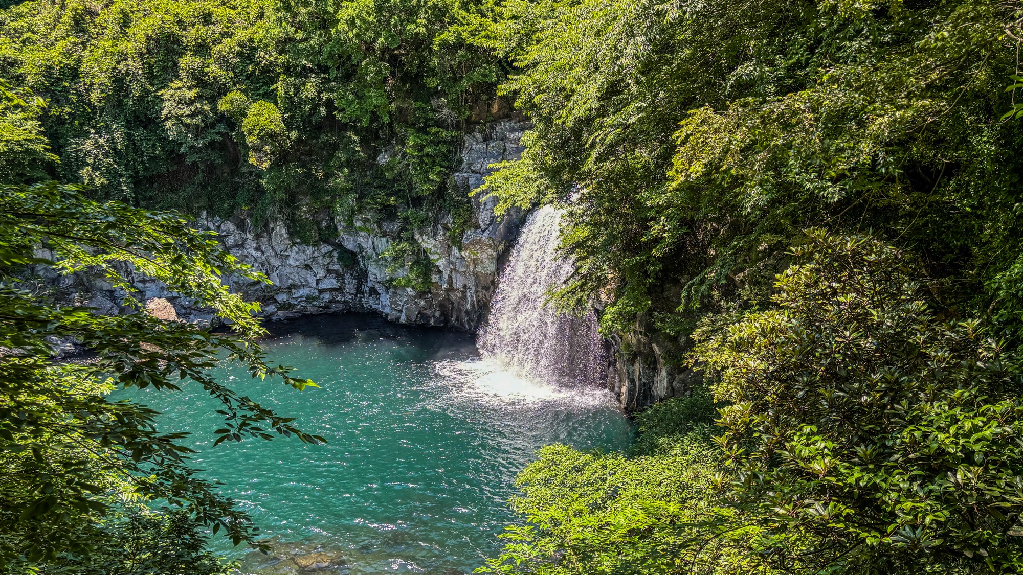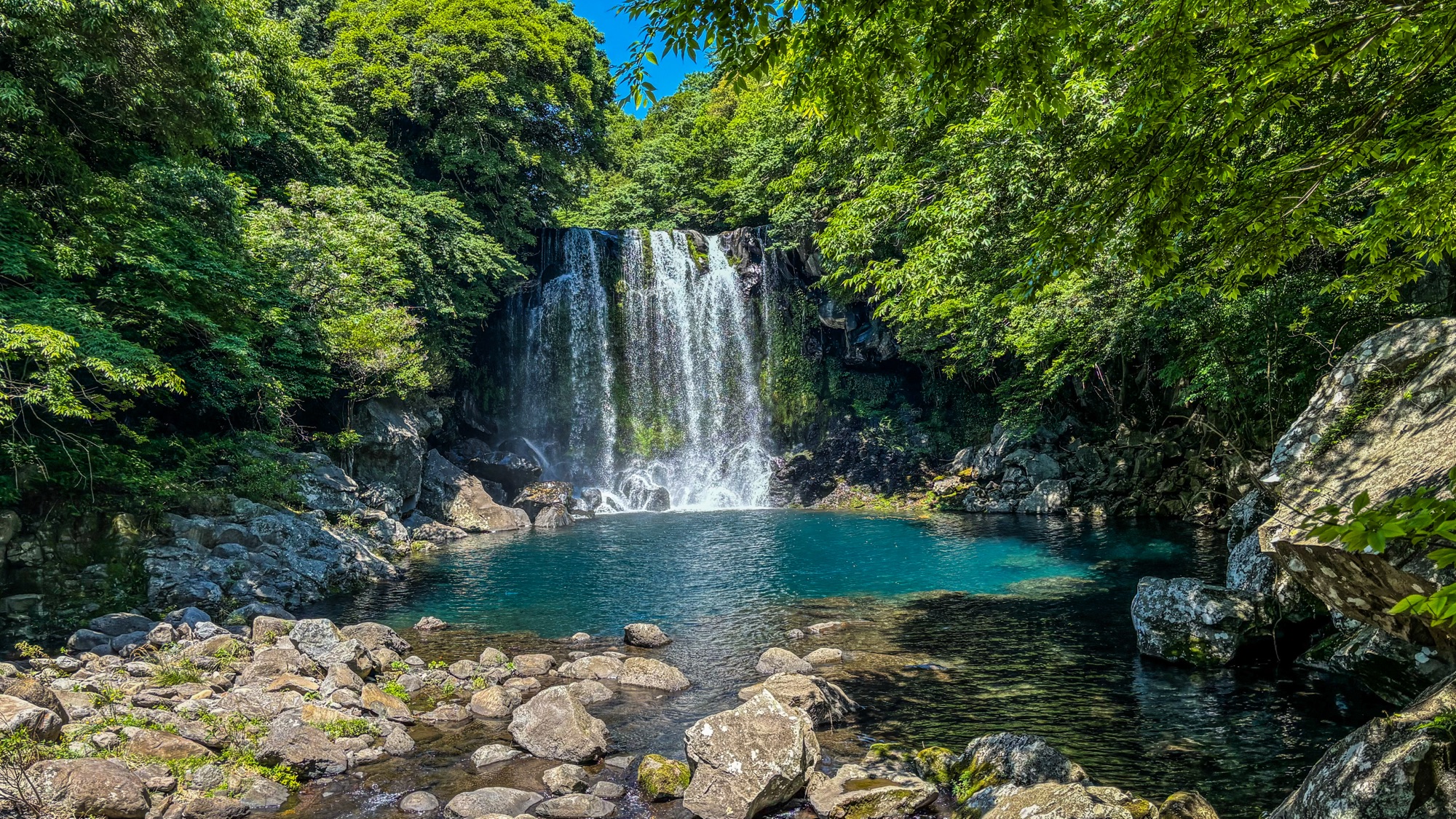 Não muito longe dali estão as Cachoeiras Cheonjeyeon (2.500 wons/R$ 10,50), três quedas d’água deslumbrantes –na verdade, a primeira, acima das demais, só tem queda mesmo durante fortes chuvas. O passeio demanda um certo preparo físico do turista, mas há uma ótima estrutura, pois escadas e corrimões bem preservados levam às cachoeiras, e bancos e mirantes estão espalhados para quem precisar de uma parada para respirar. Para o início de tarde de uma terça-feira, tinha bastante gente aproveitando o local.