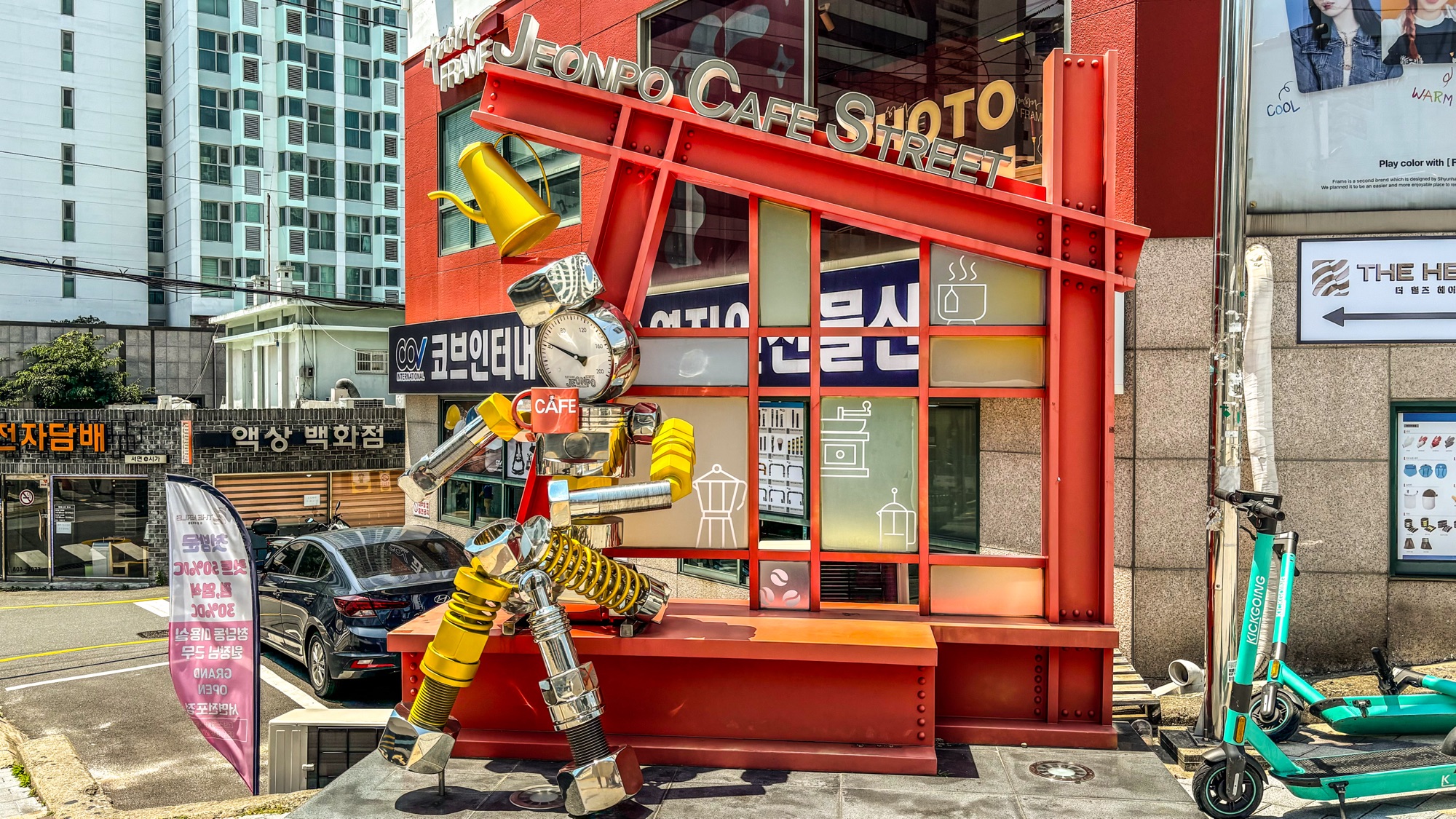 Com pouco dinheiro no bolso, passeamos a pé pela região do hotel, o Kimchee Busan Downtown Guesthouse (36.923 wons/R$ 148,50). Assim como na capital, ali amantes de café encontram muitas alternativas. Há, inclusive, a Jeonpo Cafe Street, que promete vários endereços do gênero, mas não sentimos que a propaganda fosse condizente com a realidade (são mais restaurantes do que cafés, infelizmente).
