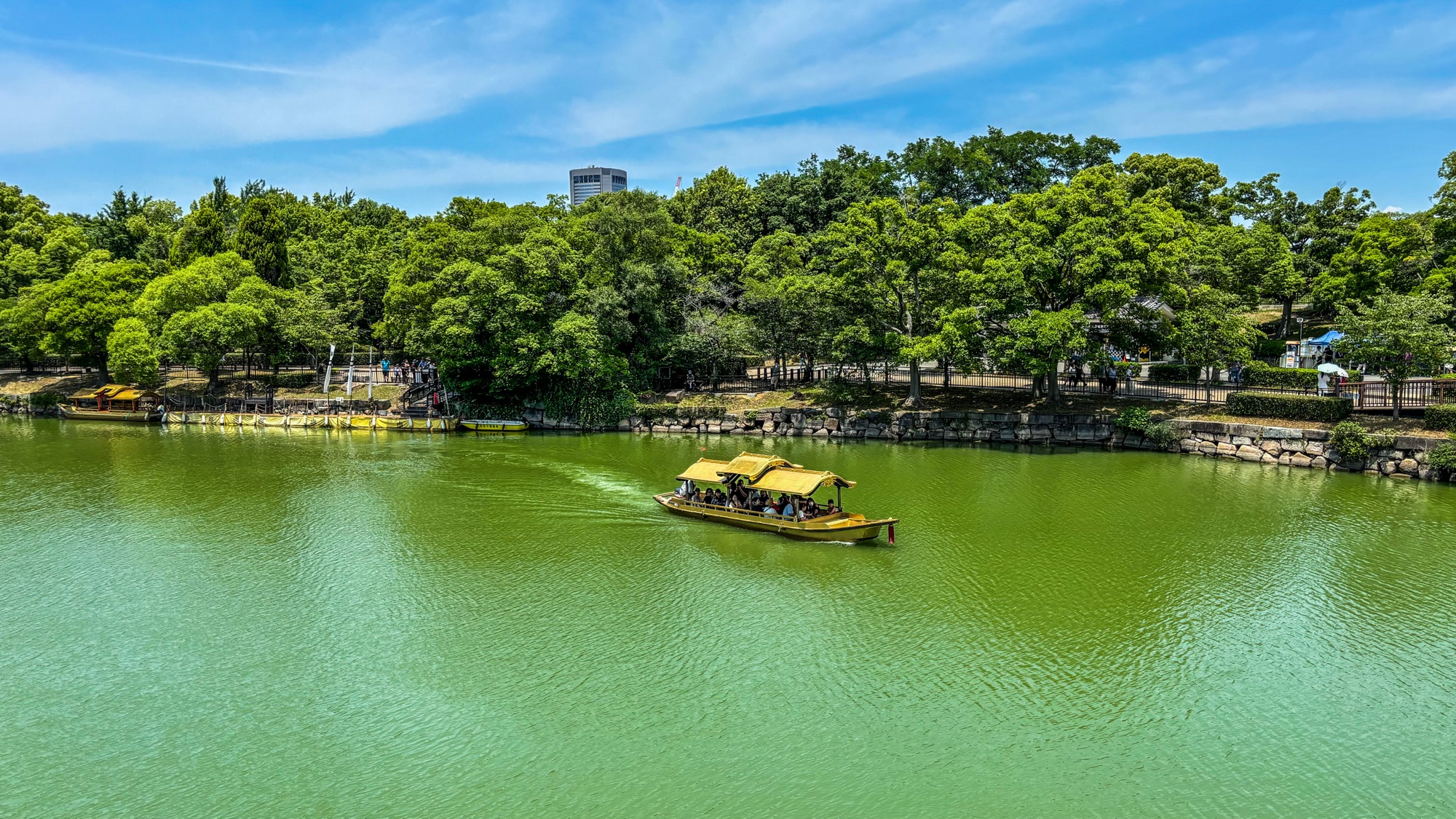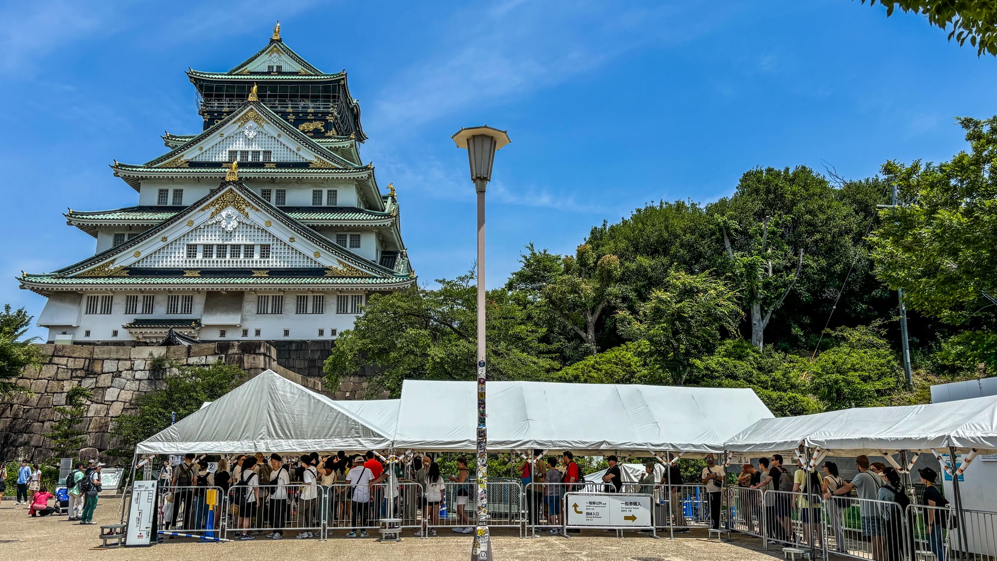 Na cidade, encontramos também nosso amigo Henrique, o mineiro com quem viajamos de carro por Namíbia, Botsuana e África do Sul. Juntos, visitamos o enorme Castelo de Osaka, que teve papel importante na unificação do Japão. Construído no fim do século 16, ele tem vários andares e uma base de pedras bem alta. Além disso, a área, murada é cercada por um fosso. Para entrar no prédio é preciso pagar o ingresso de 600 ienes (R$ 20,50) e enfrentar uma fila considerável, o que nos fez desistir de conhecer a parte interna.