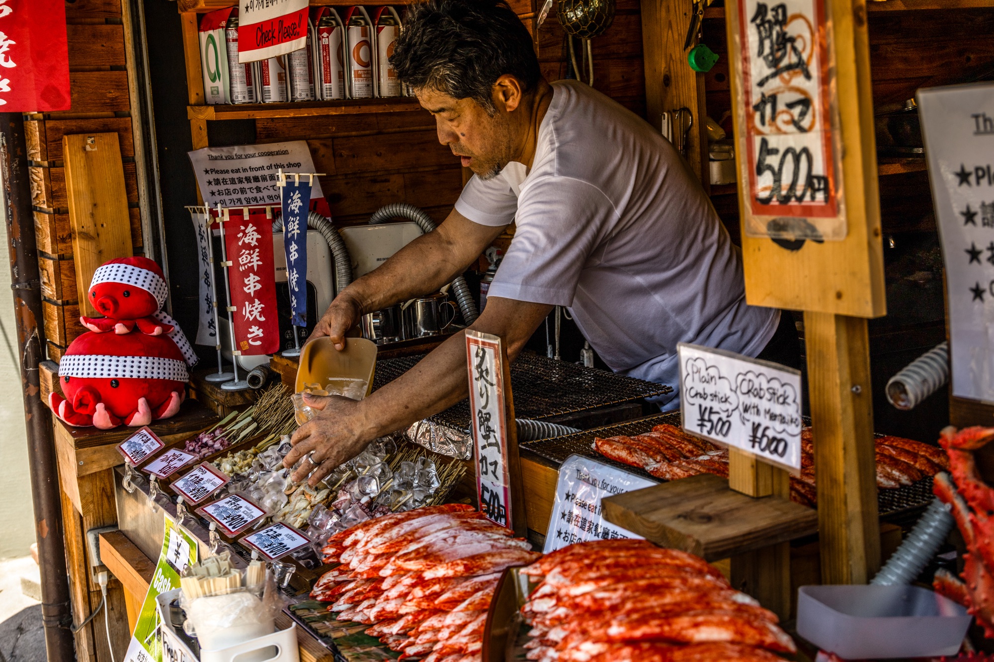 Percebemos que, assim como na Coreia do Sul, no Japão as conveniências —ou kombinis— são bem populares, e encontramos de doces e marmitas a suhis e oniguiris, uma espécie de esfirra de arroz. Por toda parte há uma unidade da 7eleven, da FamilyMart e da Lawson. Nestas, inclusive, é comum ter caixa eletrônico compatível com cartões da Wise —infelizmente, penamos para achar lugares que os aceitam no dia a dia.