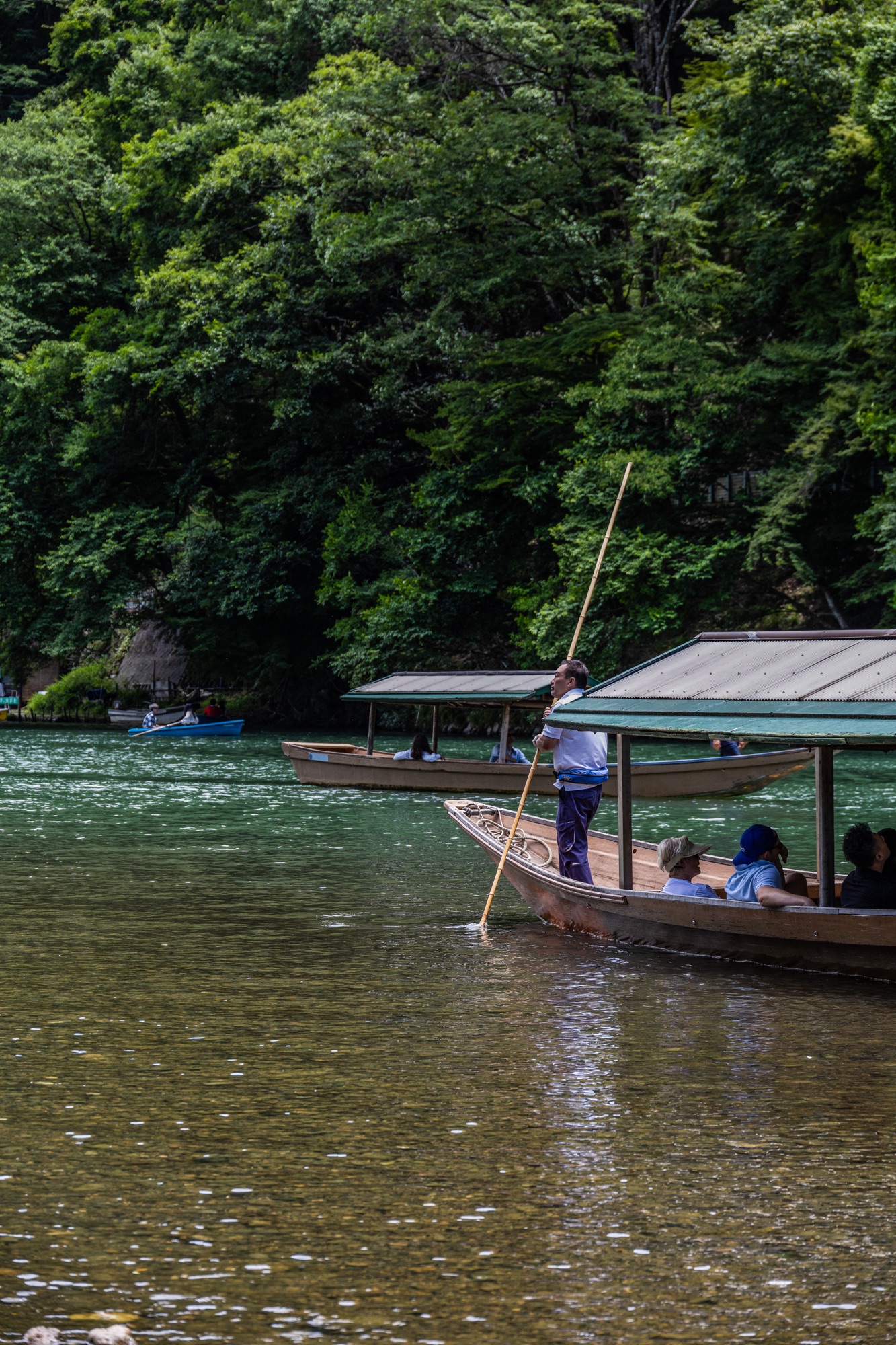 Outro local cheio é a floresta de bambu Arashiyama, mais afastada do centro. Na pequena trilha em meio ao bambuzal, as muitas pessoas atrapalham os momentos de contemplação. Por isso foi uma grata surpresa, ao andarmos ao longo do rio Katsura em direção ao metrô, nos depararmos com uma paisagem idílica: a floresta de verde reluzente combinava com as calmas águas e os silenciosos barcos. Para completar o cenário, uma mulher tocava em sua flauta uma melodia que reverberava pelo vale. Menos de um quilômetro adiante, uma multidão ocupava restaurantes e quiosques de comida.