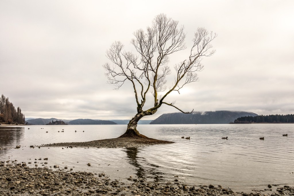 Hora de cair na estrada e seguir para Wanaka, como sempre com muitas paradas. A cidade é maior do que as anteriores, mas sua principal atração é uma árvore em um lago. O nome é um resumo do bom humor neozelandês: “Aquela árvore de Wanaka”. E é isso mesmo, uma árvore num lago cuja imagem pode ser plano de fundo para várias frases motivacionais.