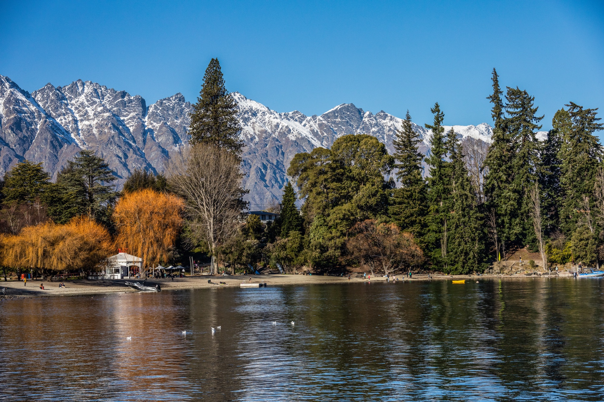Apesar do movimento intenso –afinal, era período das férias de julho e alta temporada de esqui–, Queenstown tem o mesmo funcionamento das demais cidades: tudo fecha muito cedo. Com o adicional de que, a partir de 15h, boa parte dela já não tem sol devido às montanhas em volta. Pensa num frio.