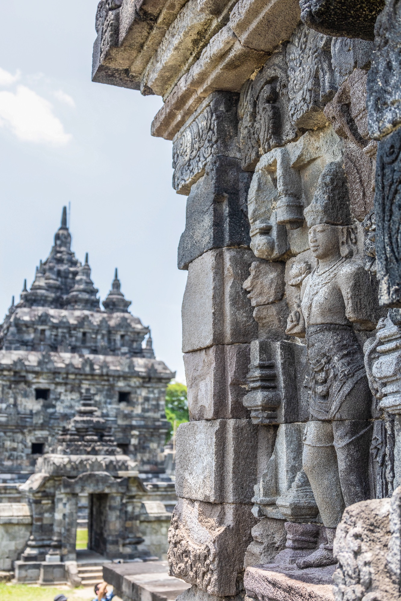 Os Complexo Plaosan e Prambanan são mais afastados do centro da cidade, mas muito próximos entre si. No primeiro, encontramos poucos visitantes e um sol pra cada um, de tão calor que estava. Ali, há duas áreas, Plaosan Kidul e Plaosan Lor, e esta abriga dois grandes templos e dezenas de monumentos, construídos no século 9 a mando de uma rainha budista com o patrocínio de um rei hinduísta.