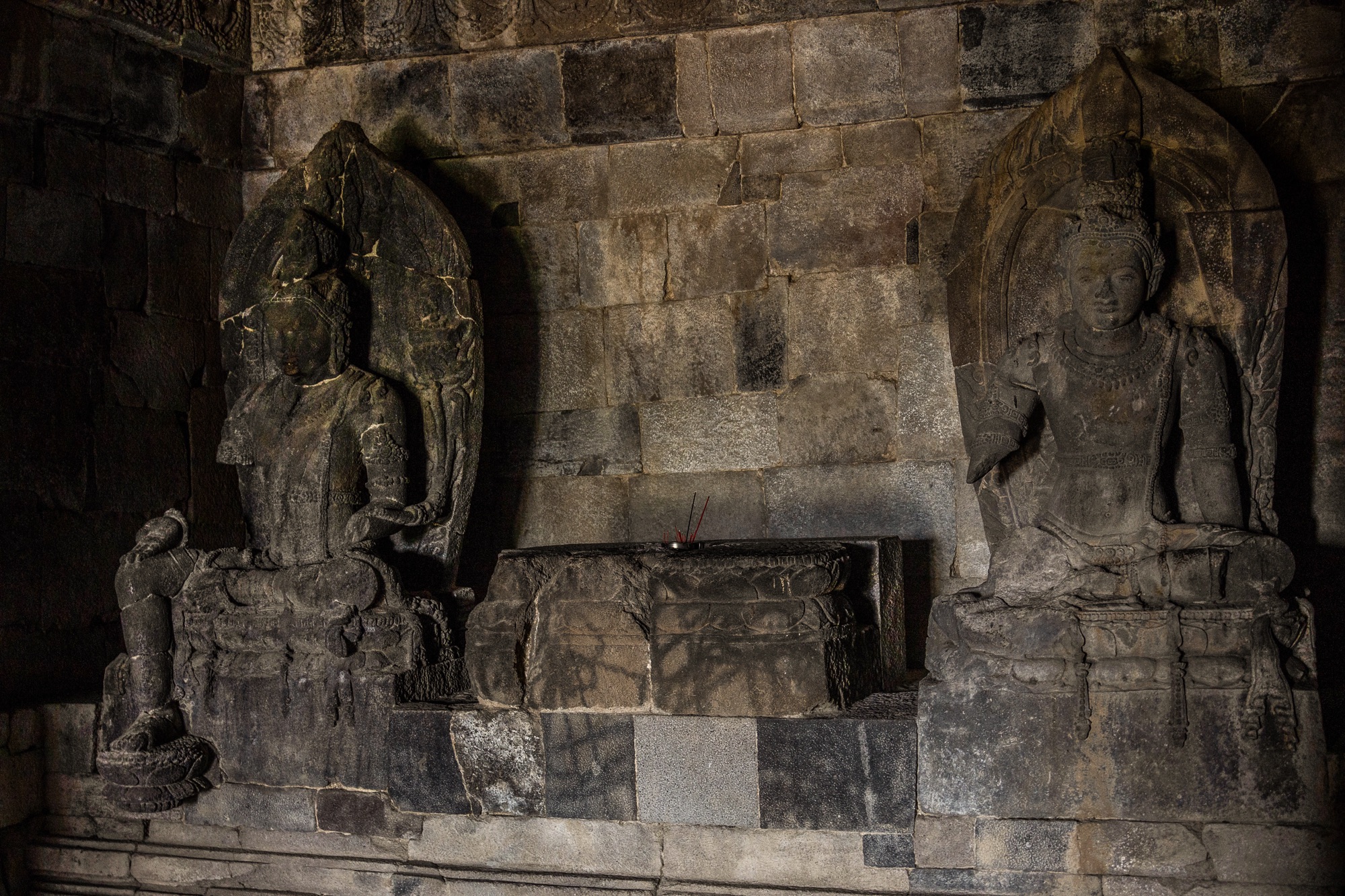 Os prédios estão bem conservados, com uma riqueza de detalhes nas pedras encravadas, tanto por fora quanto por dentro –nos lembrou as muitas construções da época dos faraós, no Egito. No interior, há três salas, com duas estátuas cada. Algumas, infelizmente, estão sem cabeça, que devem estar em alguns museus da Europa. A entrada custa Rp 50 mil (R$ 18,50).