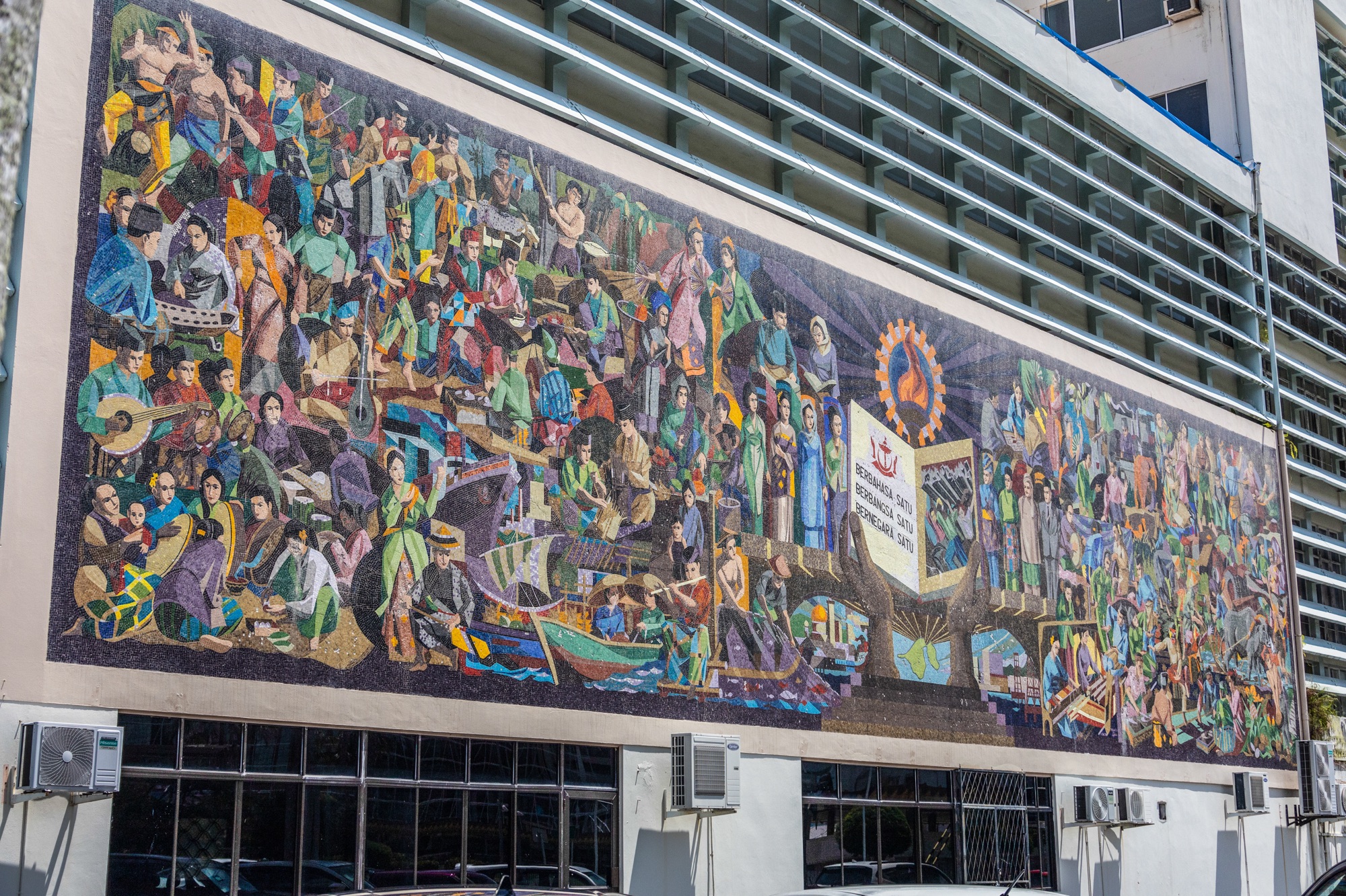 Não muito longe dali fica a Biblioteca Dewan Bahasa & Pustaka, que tem um fraco acervo, mas um belo mural do lado de fora. Se esse prédio é simples, o Royal Regalia Museum (B$ 5/R$ 22) é extremamente grande. Afinal de contas, ele abriga os presentes que o sultão ganhou de outros países —mas não do Brasil—, assim como uma réplica em tamanho real da comitiva que participou da coroação do monarca. A curiosidade é que o visitante deve entrar descalço no lugar e, apesar de quase todas as salas terem carpete, as nossas meias continuaram limpas no fim do passeio.