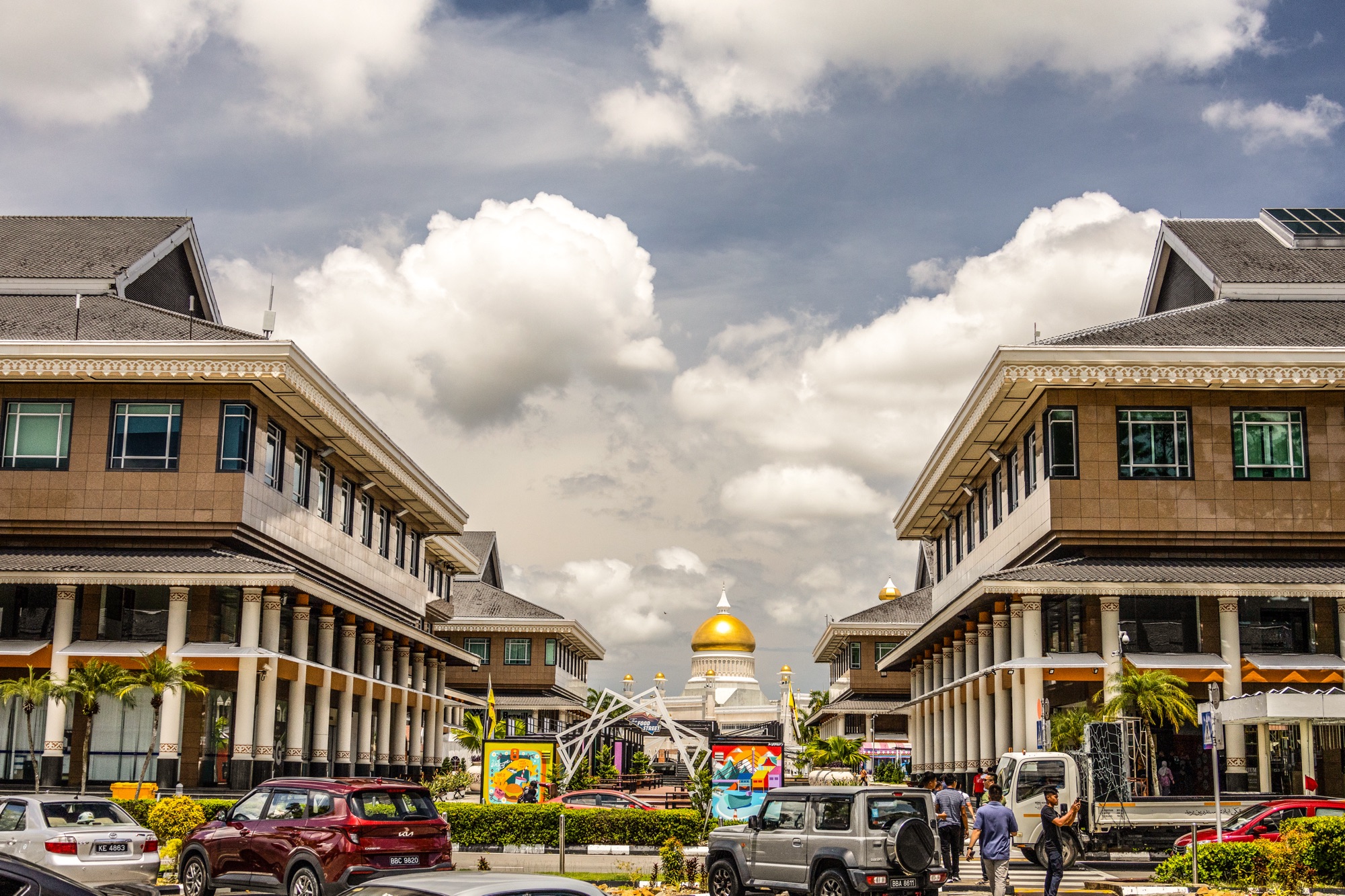 Em frente ao prédio religioso com o nome do antigo sultão está o shopping Yayasan Sultan Haji Hassanal Bolkiah, com lojas —a de suvenir é muito boa—, cafés e um potente ar-condicionado. Na parte externa, há uma feira gastronômica que deve bombar à noite, mas que estava sempre vazia durante o dia.